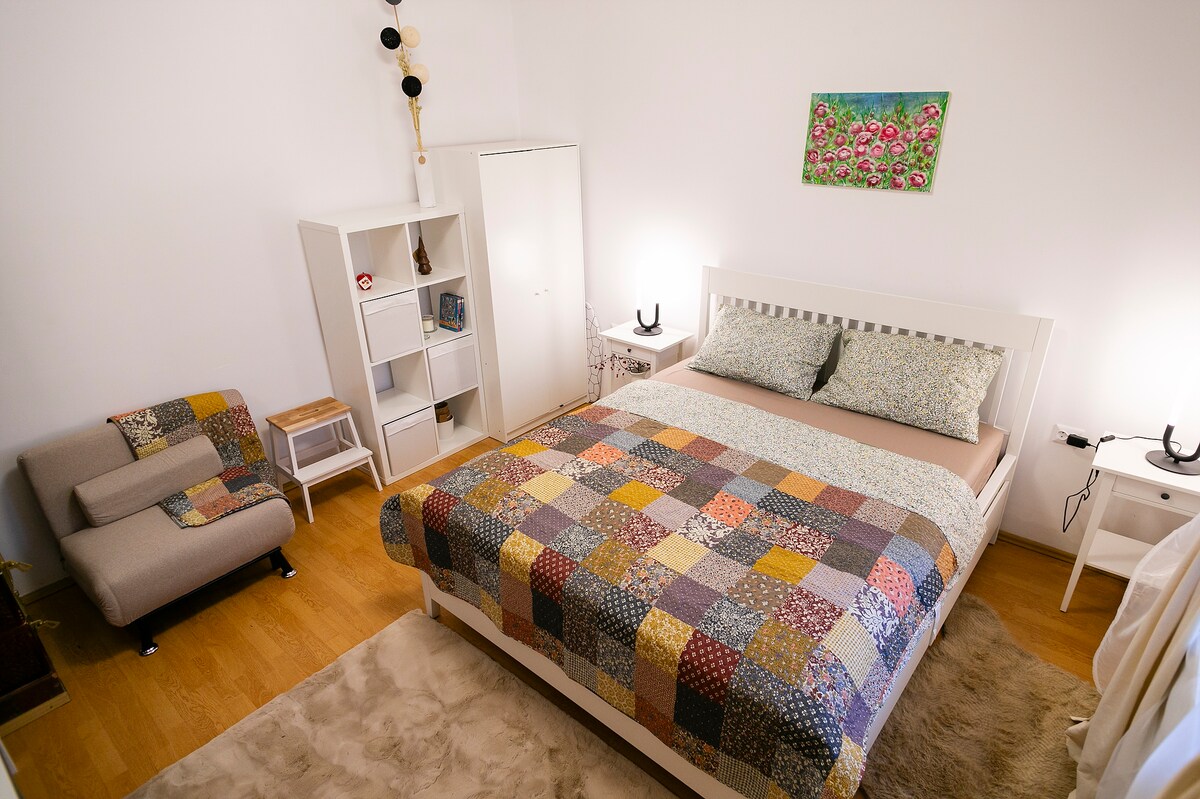Apartamentul este situat aproape de centru si iulius mall, facultatea de medicina ,o zona linistita de case . nou renovat ,parter , - Parcare gratuită pe stradă - pat dublu -clima -masina de spalat -uscator de haine electric -fier de calcat haine -frigider - smart tv, cablu tv ,Netflix -internet -chicineta ,dotata ( vesela ,cafetiera , plita pe inductie.) -incalzire colterm (reteaua se stat). -baie cu dus se asigura lenjerie , hartie igienica ,sampon ,sapun. -sunt acceptate animale de companie
