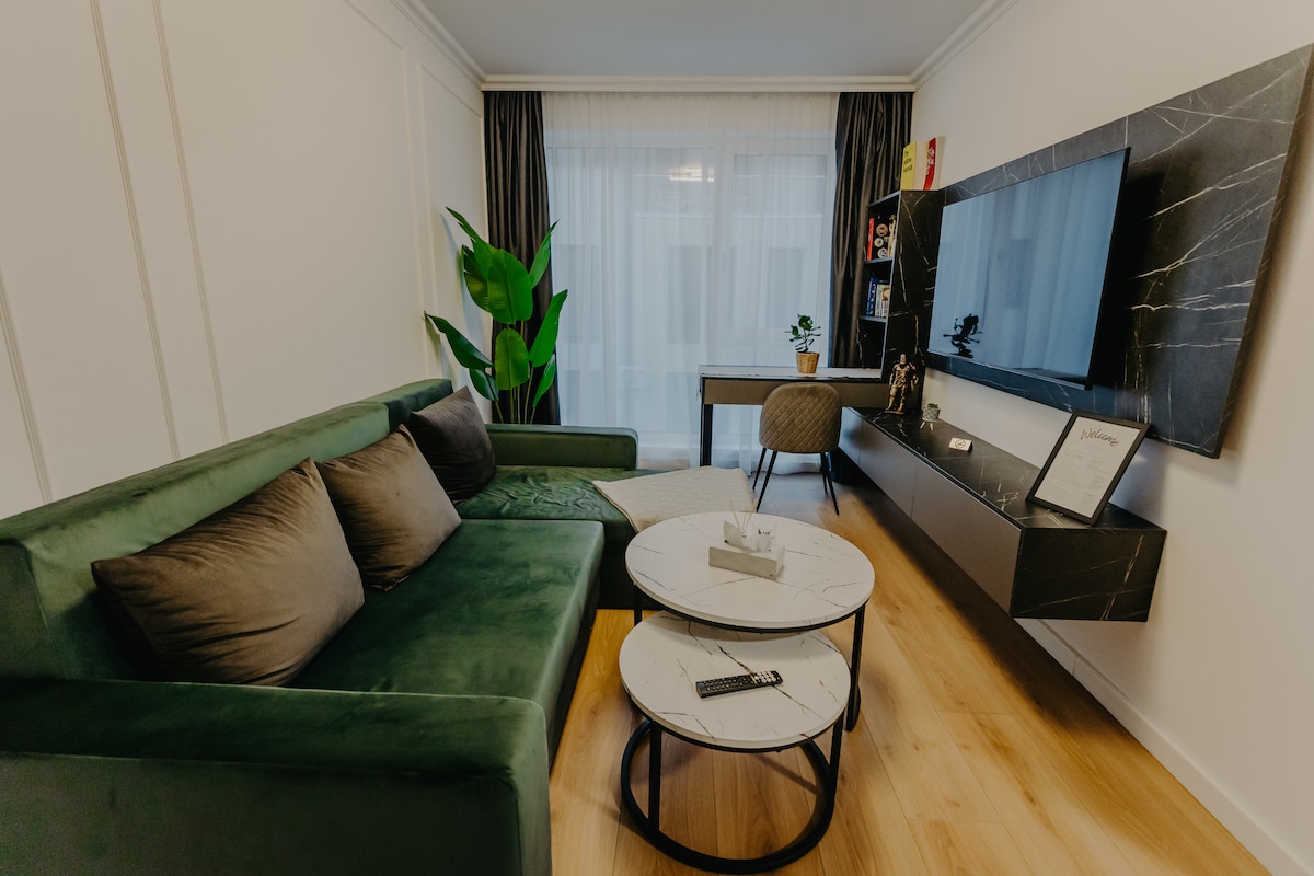 Stay in a stylish studio where refined design meets modern comfort, set in a central area of Timișoara. Within walking distance to Union Square, Victory Square, the Orthodox Cathedral, as well as top restaurants, cafés, and museums, it’s the perfect base for exploring the city. The thoughtfully designed space offers a warm and elegant atmosphere, ideal for both relaxing evenings and productive stays. A premium blend of style, comfort, and location.