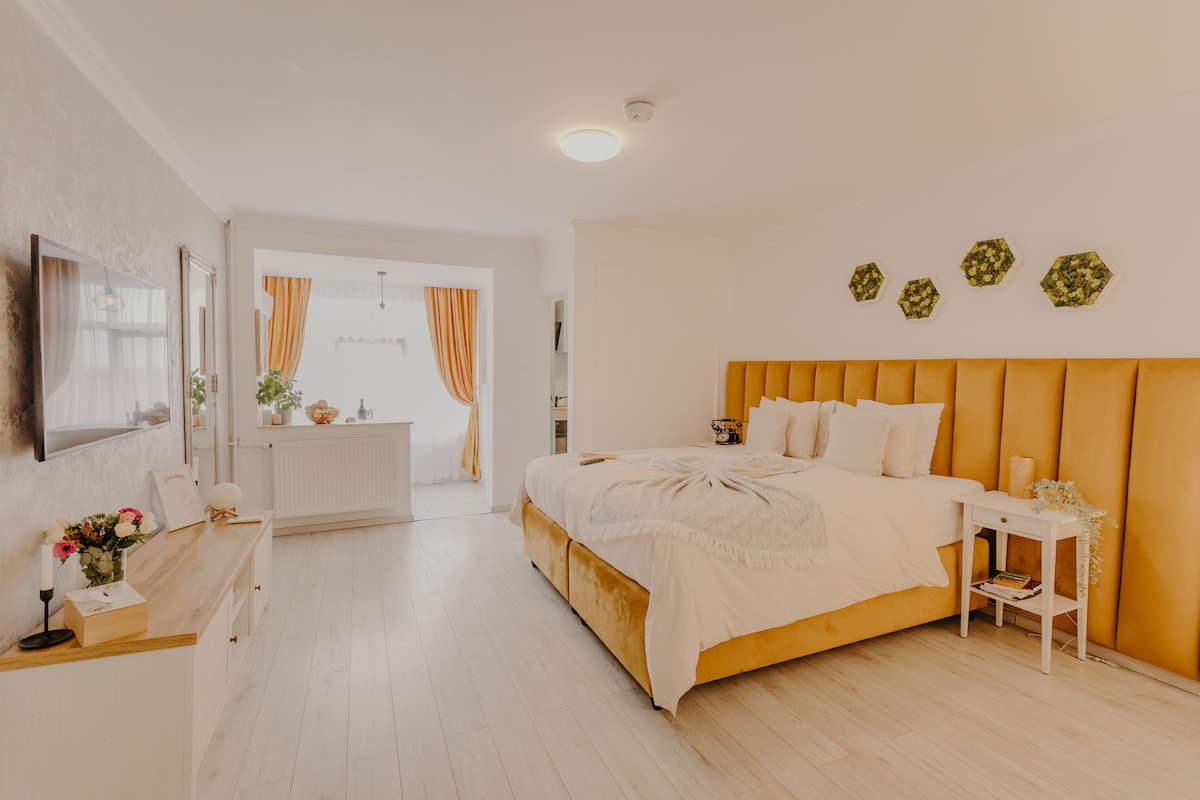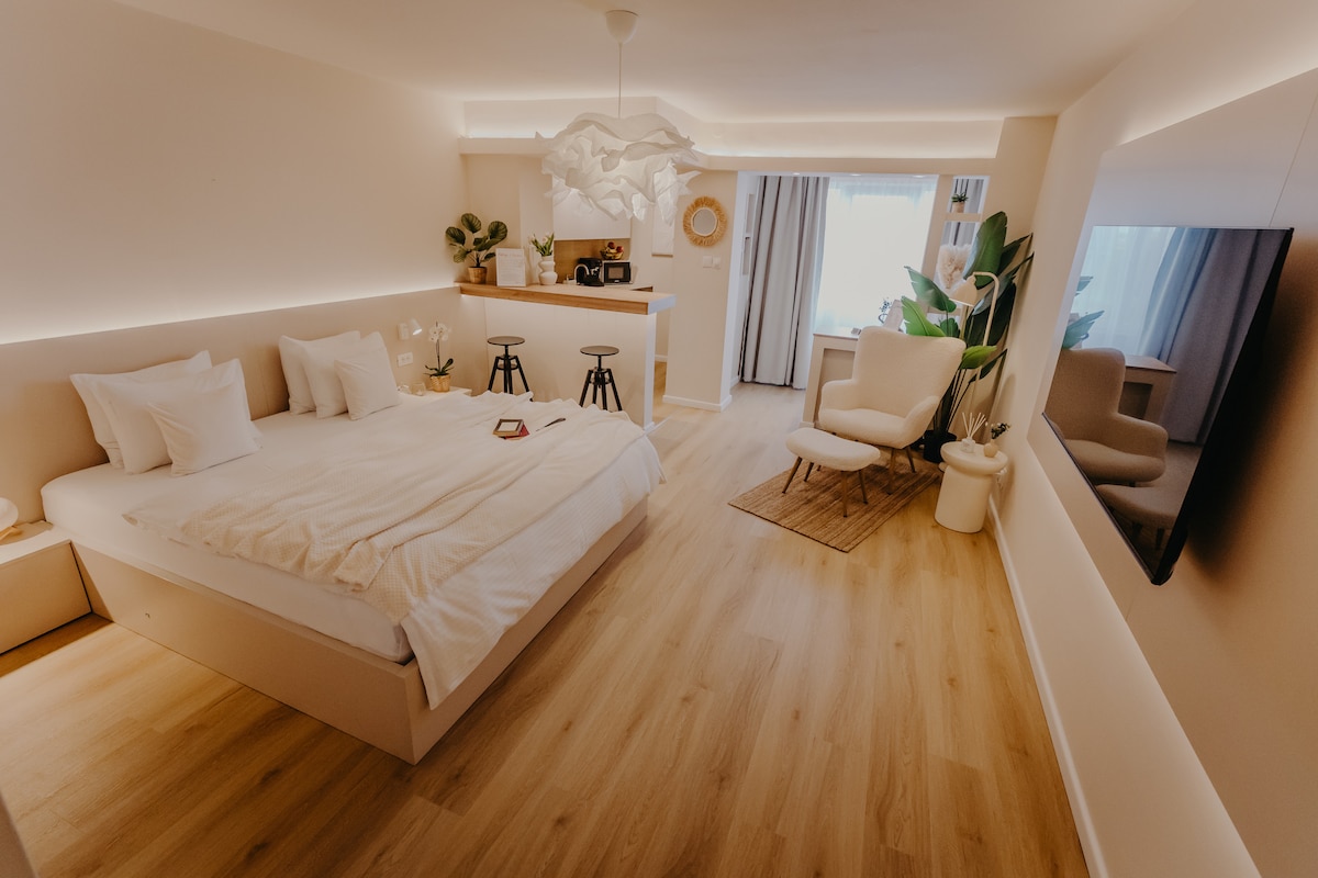 A place where the noise fades, the lights soften, and time slows down just enough for you to breathe differently. Set just a short walk from Unirii Square, this elegant studio combines a central location with a calm, refined atmosphere. Warm lighting, soft tones, and a thoughtfully designed space create comfort from the moment you arrive. Evenings feel slower, mornings begin gently, and the city remains close—yet never overwhelming. A premium retreat designed for relaxation and comfort.