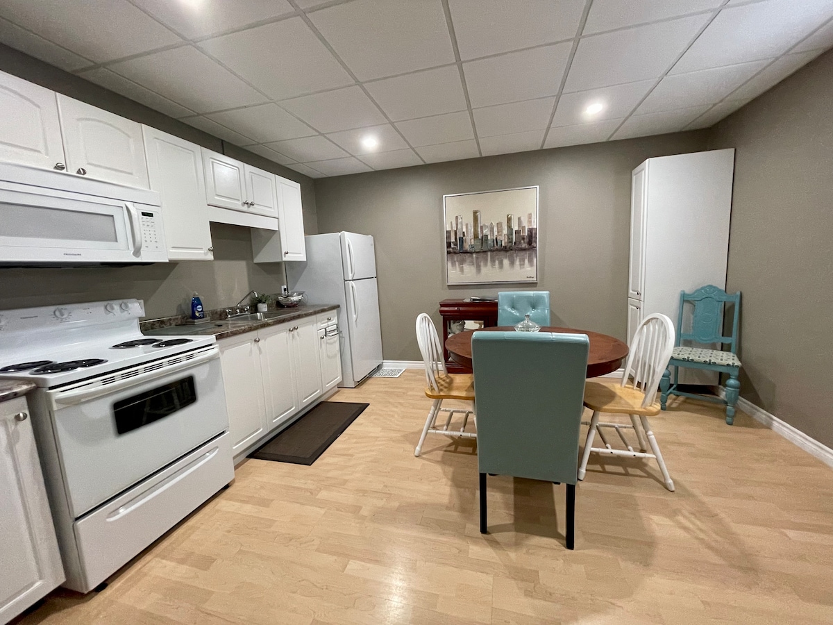 This newly renovated lower level apartment is fully furnished with all brand new furnishings including king size bed. Parking is protected by lights and video. Private keyless entrance. Only a 5 minute walking distance to groceries, Tim Hortons, Bakery, Pharmacy, Dentist, GoodLife Fitness and Restaurants. 24 hour variety store located 2 minute walk which serves fast food. House Rules - No pets - Adults only - No parties - No Smoking - No excessive noise