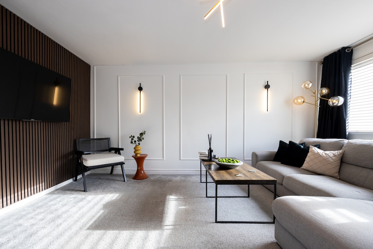 Welcome to Acre House This unique place has a style all of its own. Newly renovated large 3 bedroom (Super King Master Bedroom) An open plan kitchen & diner with a bright, cosy, homely feel that won't disappoint Catering for large & small families as well as couples looking for a relaxing retreat or even work related stays Located in the leafy suburb of Bramhall, with a direct trainline into Manchester as well as being only 5 miles from Manchester Airport & a stones throw from the Peak District