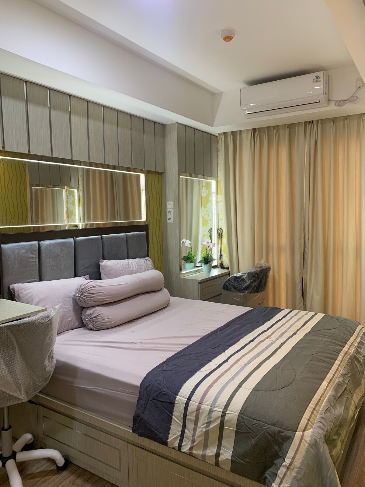 This apartment was located near the sultan hasanuddin airport, around 7 minutes by car. There is also bus station near the apartment that you can take to go to the city and around makassar, its a spacious,quite and comfortable place and very good for your staycation.We provide you with all the amenities that you need including a strong wifi and a smart tv where you can watch netflix and more streaming platform.