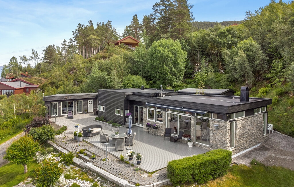 Large Swiss style Villa in the Norwegian countryside, built in 1898. Excellent for hiking, boating, fishing, and relaxation. Enjoy the view of the mountains and the fjords. Fully equipped kitchen, dining room, and living room. Large garden and outdoor area with seating. Wood fired hot tub outside and freestanding bathtub inside. Perfect for families, couples, friends, and fishing tourists. Registered as fishing tourist company with regards to export limits. Boat for rent.