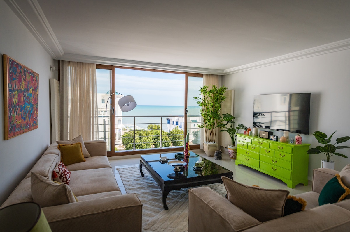 Un studio charmant pouvant accueillir 2 à 3 personnes. Vous y trouverez une grande terasse, pour des repas avec vue (barbecue ).Ce studio à la vue imprenable sur le Golfe de Tunis, se situe au cœur du village de Sidi bou Saïd. Vous aurez l'occasion de découvrir l'architecture unique de ce site inscrit au patrimoine mondial de l'unesco. Les maisons bleues et blanches,Le palais du Baron d'Erlanger, le café des délices chanté par Patrick Bruel, les vues uniques, seront tous au rendez-vous!
