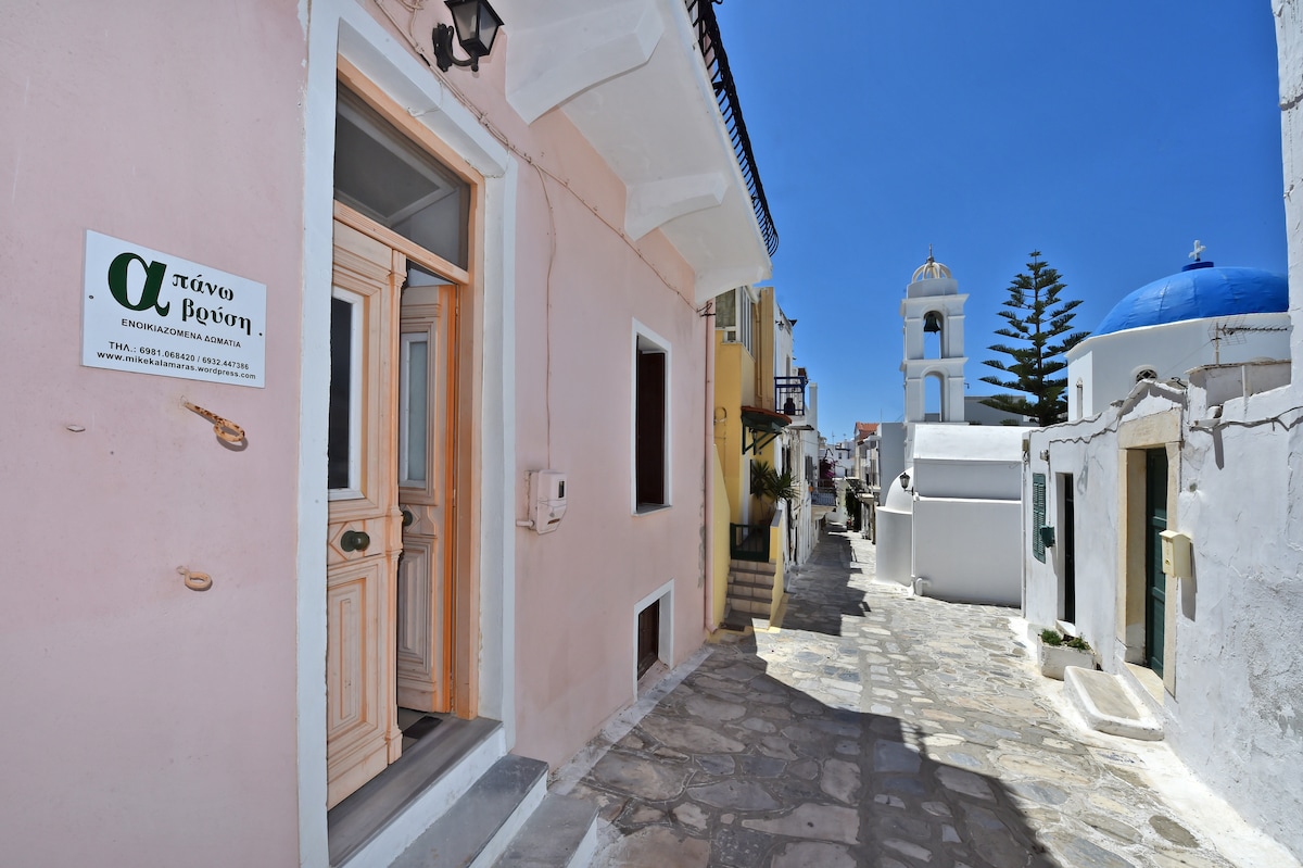 In Aghios Romanos (Saint Roman), just 70m from the beach, we offer two independent guesthouses(mezzanines)with stunning sea and mountain views. Built in the traditional Cycladic architectural style and nestled in a serene and well-preserved environment, these guesthouses are ideal for the revitalisation of two individuals, two couples, or a group of four.