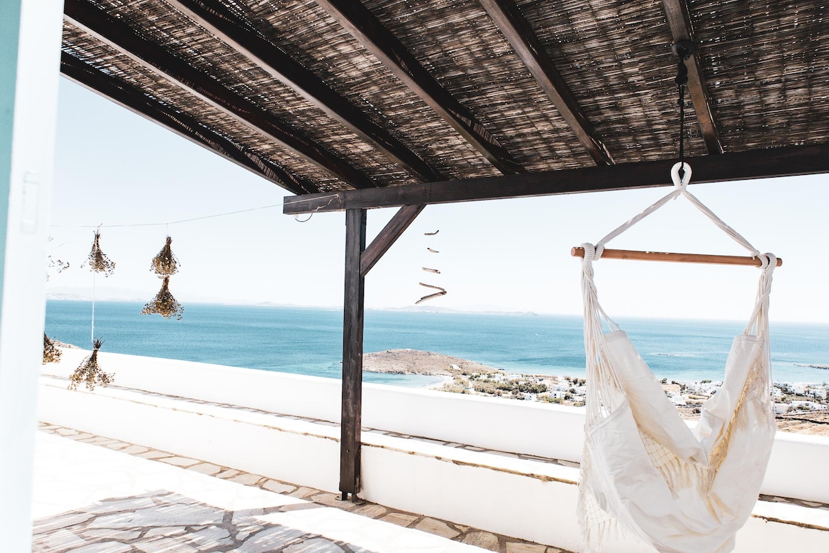 A unique gem influenced by the Cycladic architecture and built on a hillside with stunning panoramic view. A cozy place full of warmth & hospitality, inspired by the island aura that Tinos offers. The friendly and warm environment, combined with the autonomy and privacy provided, aim to offer the relaxation and amusement that you need. An unforgettable and dreamy experience, full of red, orange and yellow sunset shades!