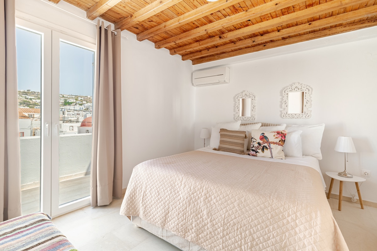 The apartment is in the heart of down town Mykonos with a main bedroom with a double king size bed and a living room with a sofa bed that can sleeps 2, totally sleeps 4 a kitchen totally fully equipped and with washing machine a roof top terrace available with view of all downtown Mykonos and with the windmills view and cruises. The only property in town with a private terrace and the amazing sunset 1173K91001195901