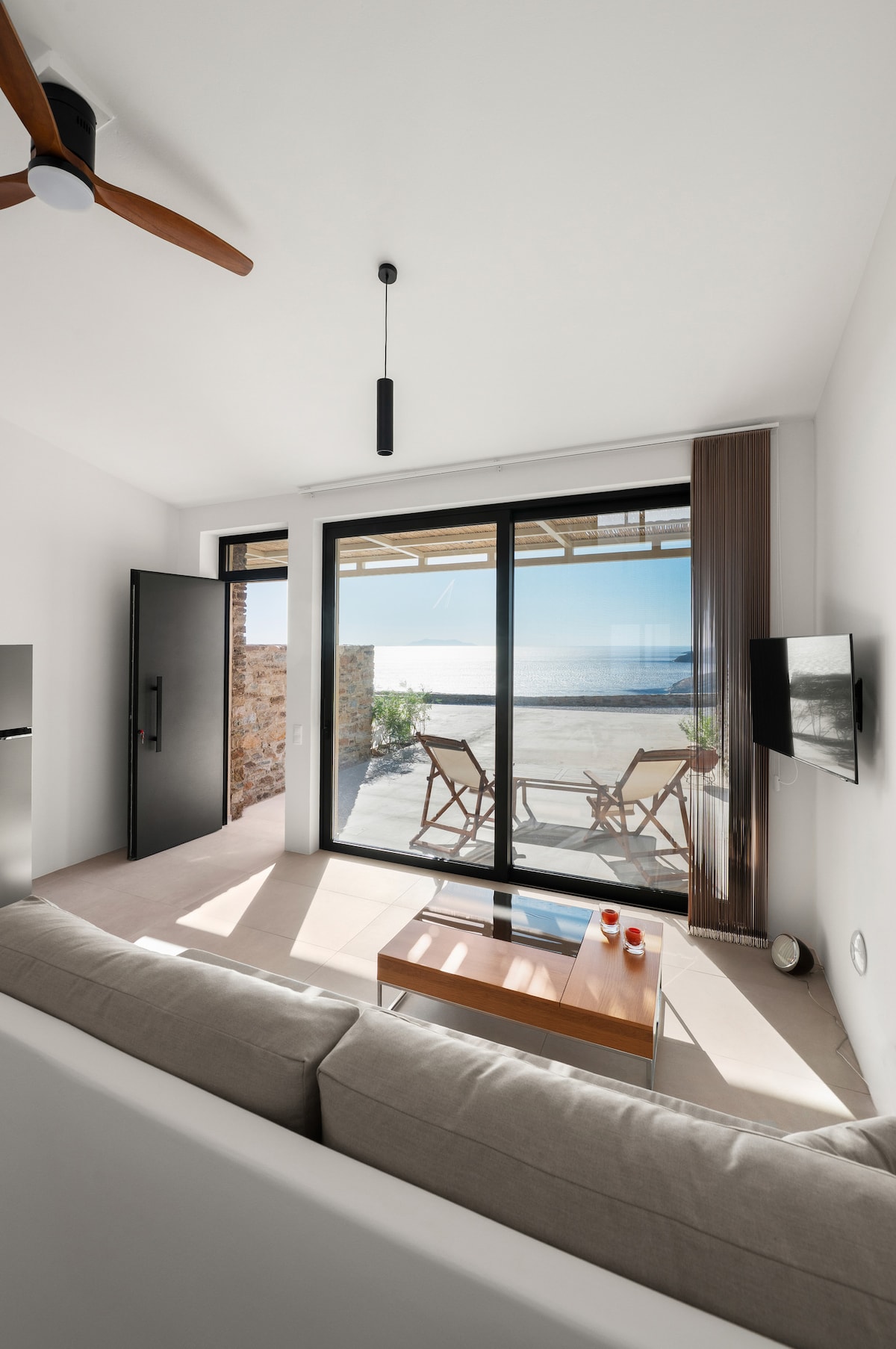 Claire is our favorite holiday home of 45 square meters that was completely renovated in 2022. It is located right next to the sea, less than a minute walk from the beach and just 3.2 km from Tinos town while bordering the ancient temple of Poseidon and Amphitrite. It stands out for the Luxury, Comfort, tranquility and privacy it offers, while comfortably accommodating a family of four and couples. It also has a private parking space.