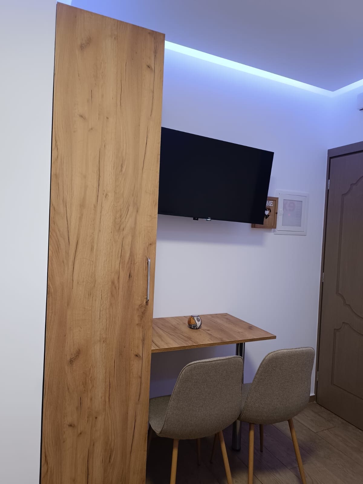 comfortable studio with kitchen and bathroom in a luxury complex with shared pool and hot tub and great sea view. Located close to Super Paradise beach (12 minutes walk distance), 5 minutes driving from the airport and the main supermarket and 10 minutes driving to town. The jacuzzi is shared with the others members of the house max 6 people.