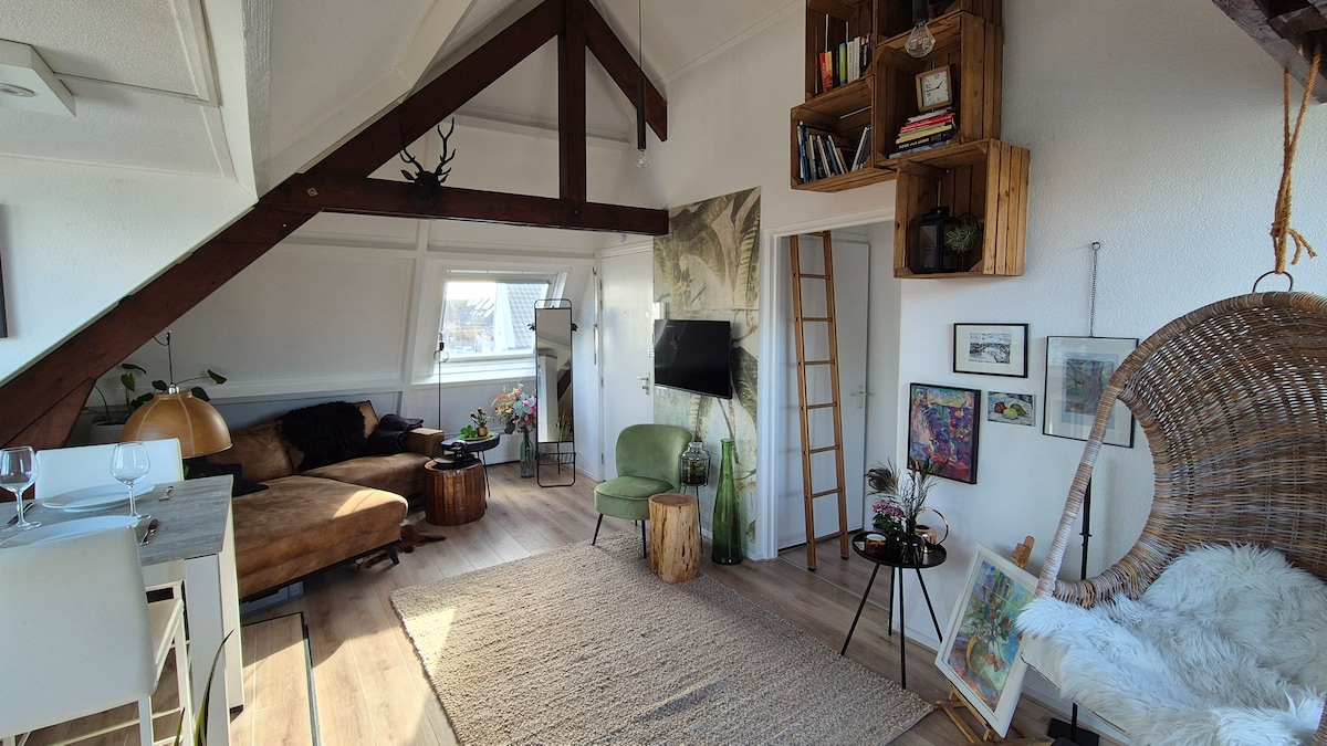 Appartement omvat 2 verdiepingen van een jaren 30 woning met dakterras in het centrum van Hoek van Holland. Verschillende supermarkten zijn op loopafstand. Op wat kletsende meeuwen na is de ligging van het woning rustig. Appartement ligt minder dan 10 min loopafstand van metrostation 'Hoek van Holland Haven' en de 'Stena Line' boot naar Engeland. Vanuit 'Hoek van Holland Haven' kunt U de metro pakken naar het strand (1 halte, 2 min). Het strand is vanaf het appartement circa 2,5 km.