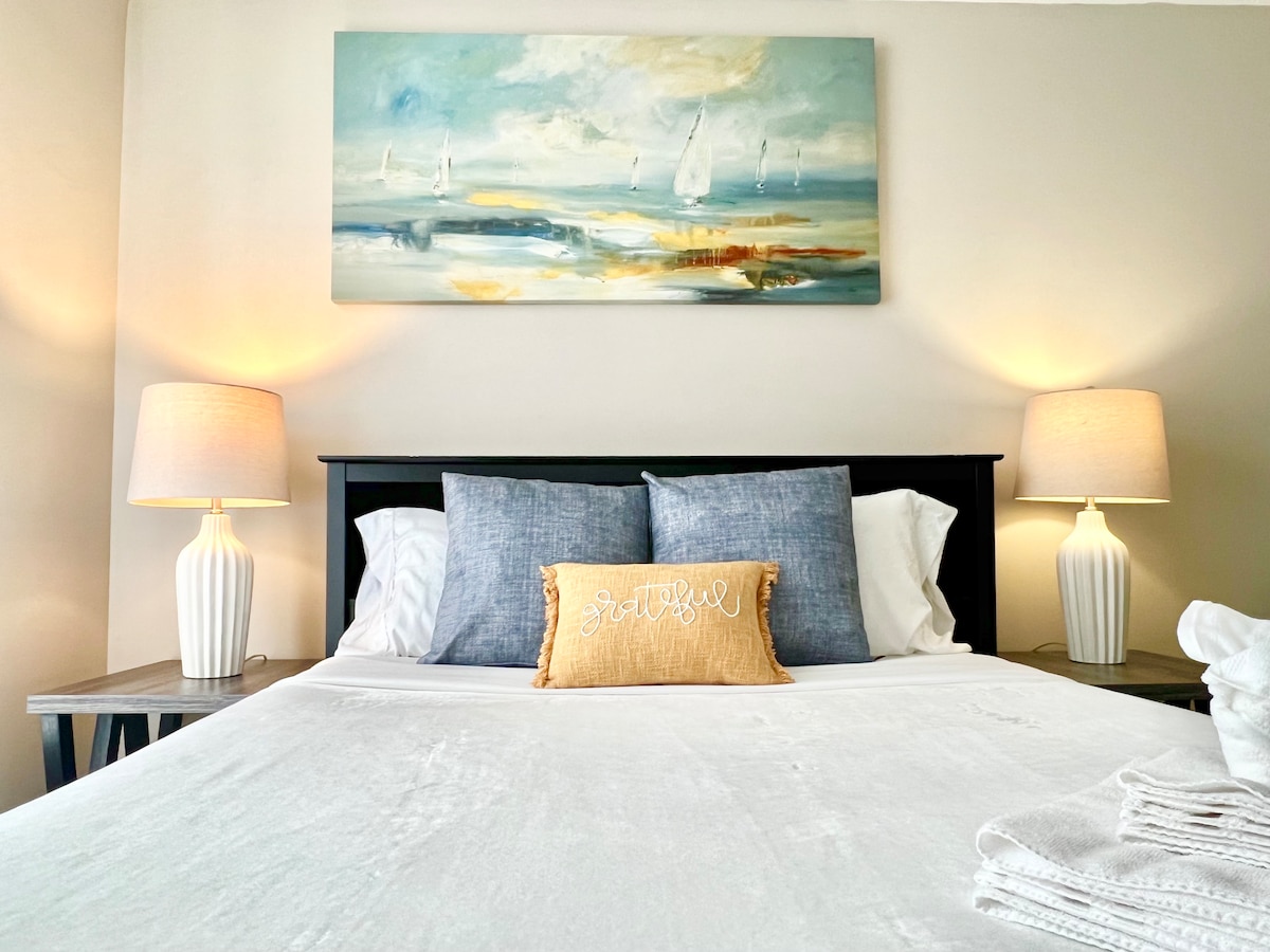 全新设计/双卧房,超大床,免费停车/高速出口2分钟