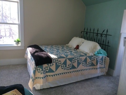 ~Check Host's Account for all Listings at Salem House~ This romantic attic room is charming and quirky. A large room with a queen bed and additional airbeds can be added making space for 4. The steep stairs and low ceilings are part of the charm but may not be for everyone. The brand new full bath offers a sit down shower for taller guests, shorter guests can stand or sit. Guest do not have access to cooking facilities but you are invited to join us for breakfast in the morning everyday.