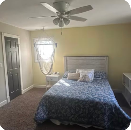 Relaxing Retreat Near Purdue – Private Guest Space! 🌿🎬 Welcome to our cozy downstairs guest space with a private entrance or access through the main living area. Enjoy a theater-style living room with a luxury reclining couch, 65” TV, and surround sound. Your space includes two bedrooms, a full bathroom, and a kitchenette. Outside, unwind in the hot tub, fire pit, grill, and trails. Your hosts, Michael & Rene, live upstairs and are happy to assist. Complimentary coffee, tea, and breakfast tr