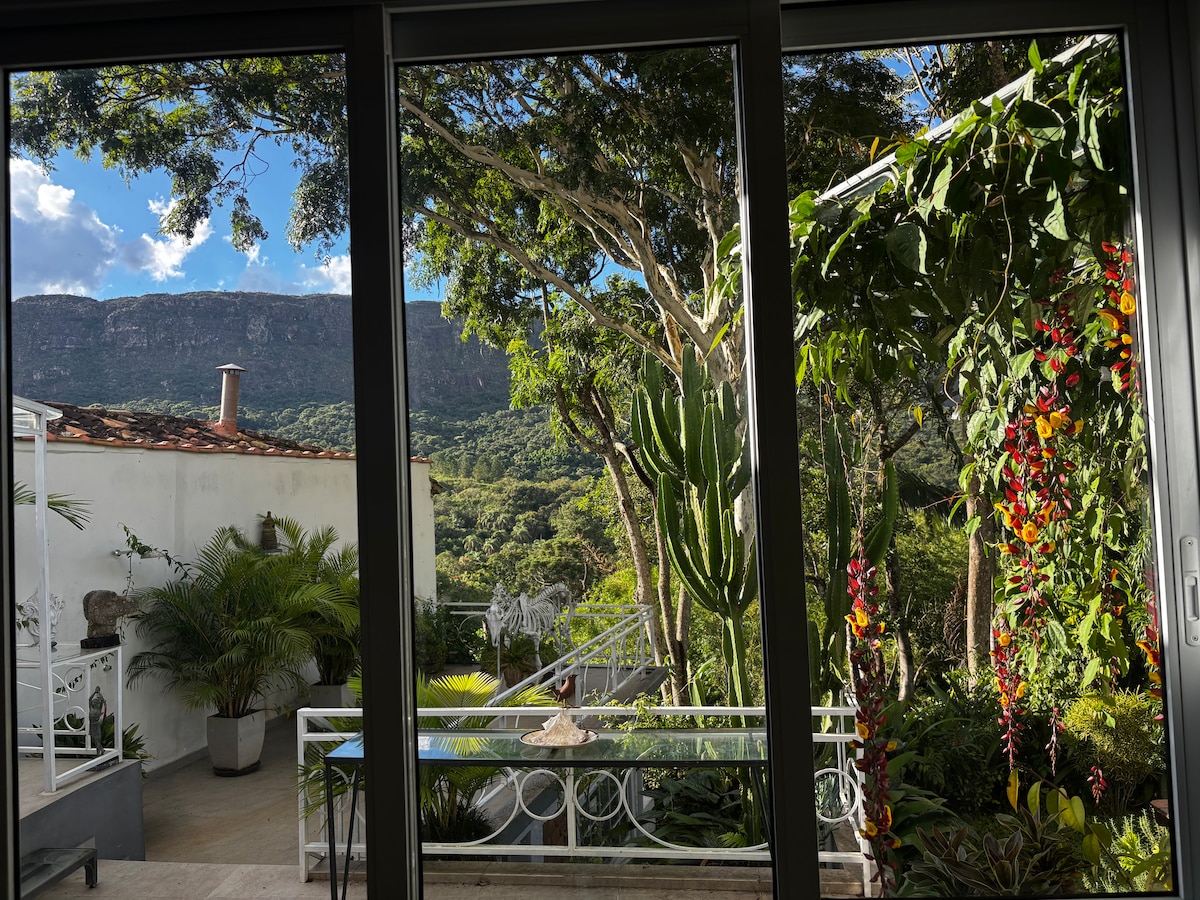 Primeiro andar inteiro da casa com um jardim lindo só para os hóspedes e entrada independente . 8 minutos a pé da Igreja da Matriz . O espaço conta com um quarto (cama de casal) e uma antessala (2 camas de solteiro). Frigobar Wi-Fi, secador de cabelo e banheiro com água quente. O lugar é bastante aconchegante e silencioso. Disponibilizamos vaga de carro para os hóspedes na parte baixa da cidade, próximo ao centro histórico é difícil estacionar próximo ao centro histórico nos finais de semana