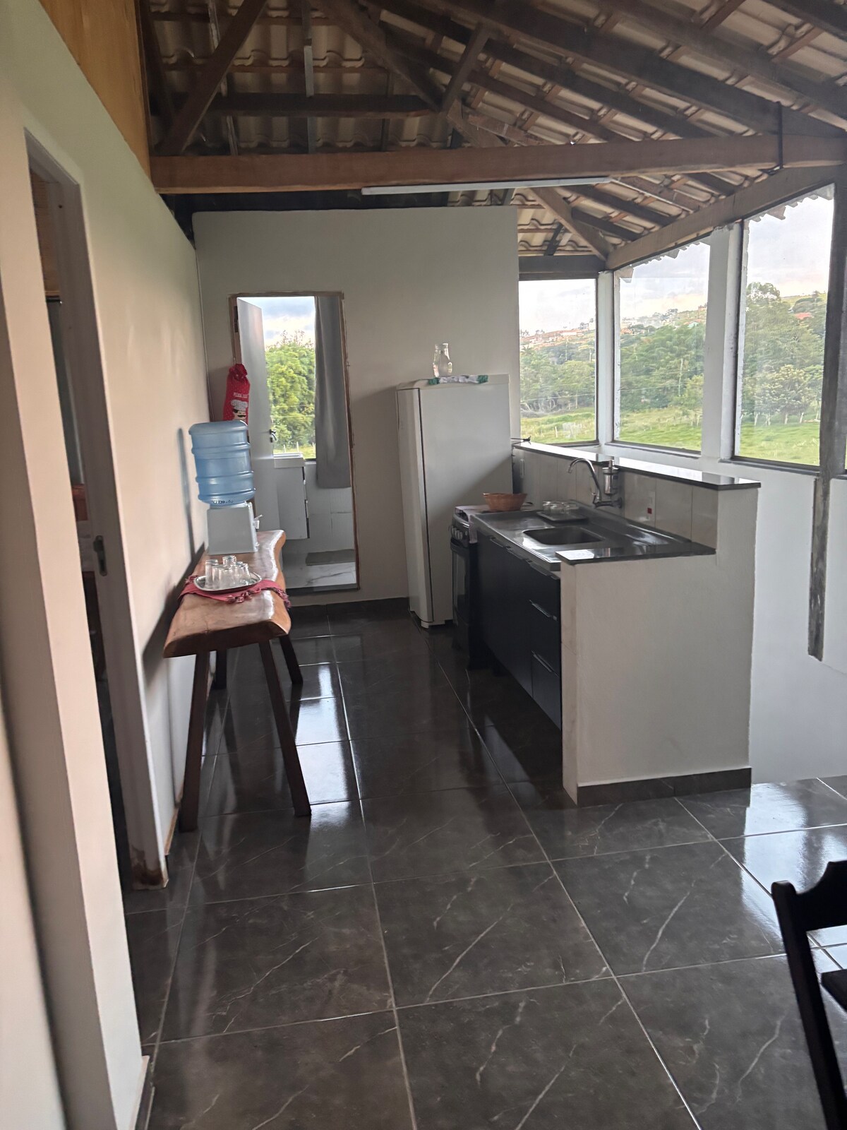 Casinha com dois andares independentes inserida na natureza. Parte superior suíte com cama King size e uma cama de solteiro ou três camas de solteiro e cozinha de apoio. Andar inferior kitnet com sofá-cama casal, cozinha e banheiro. Localizada perto do balneário Águas Santas, está a 9km do centro histórico de São João del Rei e 13km do centro histórico de Tiradentes.