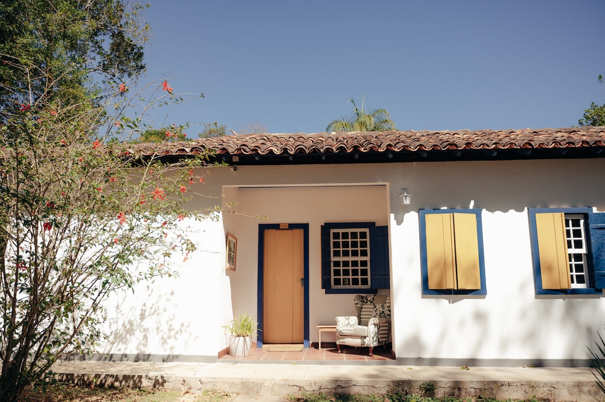 Casa inteira para o hóspede situada na Vila de BICHINHO. Decoração rústica, arejada, lindo quintal e jardim arborizados, ideal para quem valoriza o sossego e quer descansar. Perfeito para casais, famílias com crianças, pets e para quem precisa trabalhar em home office. Poucos minutos de caminhada separam o chalé do centro de Bichinho, onde o hóspede poderá desfrutar da gastronomia mineira, lojas de artesanato local, móveis e alambiques. Fica a 7 km da charmosa cidade histórica de Tiradentes.