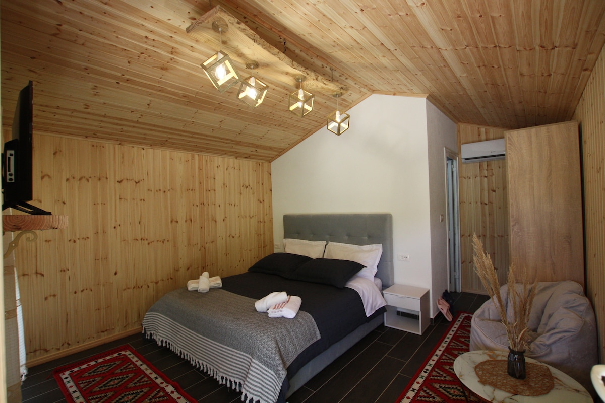 Welcome to our cozy wooden retreat nestled in the serene surroundings of Shëngjergj! This charming cabin offers a tranquil escape, perfect for couples or solo travelers seeking a peaceful getaway. Relax in comfort with rustic yet modern furnishings, a luxurious king bed, and all the amenities you need for a comfortable stay. Step outside to breathe in the fresh mountain air and soak in the natural beauty of the area.
