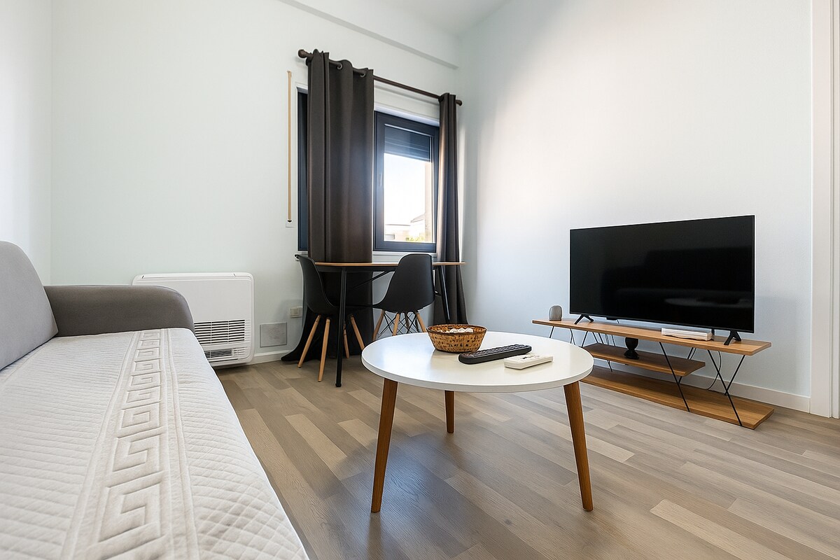 This cozy studio apartment in Myslym Shyri, Tirana, offers a prime location near Skënderbej Square and Blloku. The space features one multifunctional room with a comfortable bed, a small dining area, and a kitchenette equipped with essential appliances. The modern bathroom includes a shower and toilet. The apartment provides a perfect blend of comfort and convenience, ideal for exploring the city's cultural attractions and vibrant nightlife.