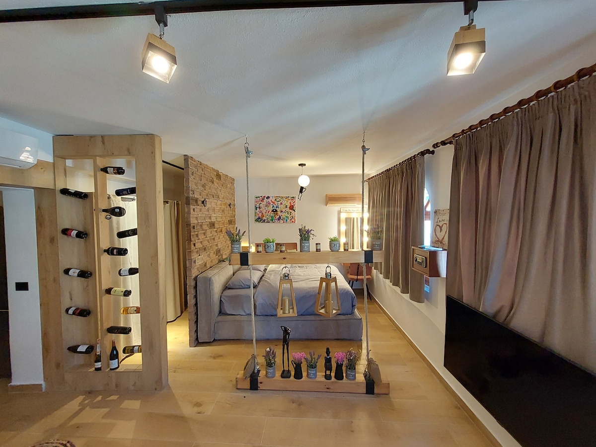 Escape to a dreamy hideaway where modern style meets cozy romance. With warm colors, soft lighting, and peaceful nature all around, every moment feels special. The perfect spot to relax, reconnect, and make unforgettable memories together. Please note: The parking space is not in the same building as the apartment. Is in another building near the apartment with a distance of 1 minute walk.