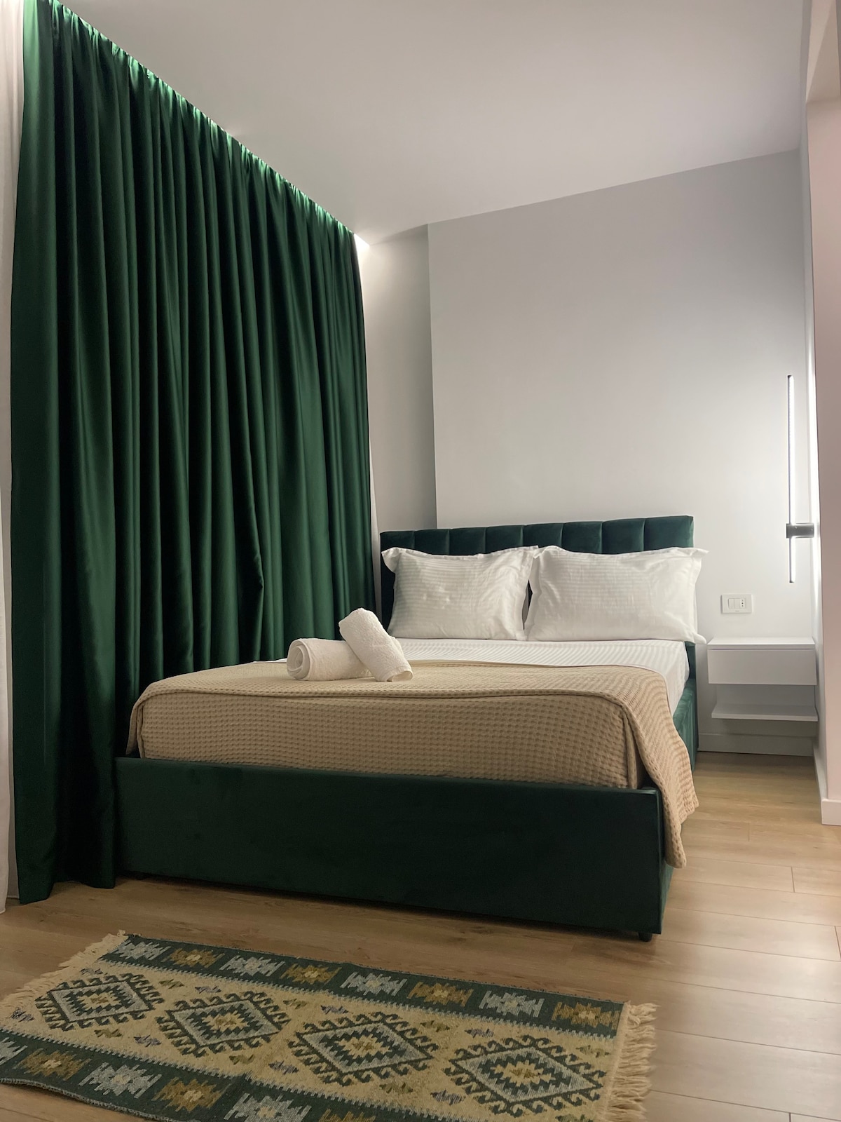 One of the most beautiful, relaxing and cozy apartement is ready to welcome you! Its perfect location, 5 min walk from the most vivid area, Bllok, will allow you to enjoy strolls and sightseeings, such as the Lake of Tirana, which is near to the apartmentment . Everything you would need to see and visit is a few steps away from the apartment! It is an exellent choice for business travelers, couples and friends.
