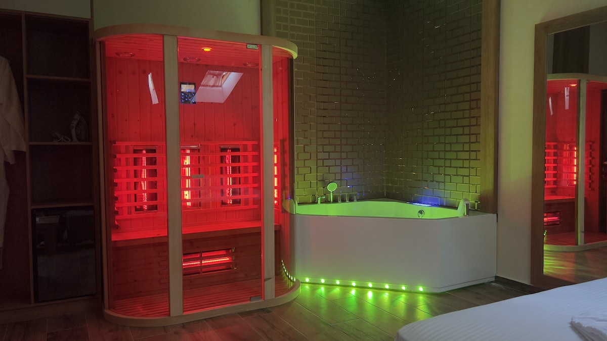 Unwind in this luxurious spa suite near Tirana’s vibrant Blloku district. Enjoy your own private infrared Sauna and Jacuzzi, perfect for total relaxation. Ideal for couples or travellers seeking comfort and style in the city’s most desirable area. Book your escape today!