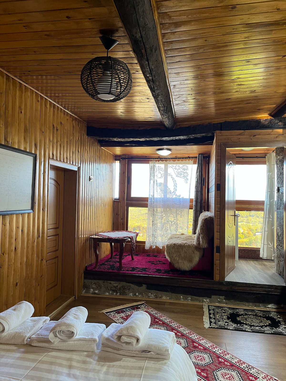 Përshkrimi 🏡 About this place Stay in an authentic Albanian stone Kulla surrounded by peaceful mountain nature. Perfect for families and groups of friends, this historic tower combines traditional architecture with comfort and warmth. The house offers a spacious open living area with a cozy fireplace, comfortable bedrooms, and multiple bathrooms for added convenience. Traditional details and handcrafted clay pottery preserve the spirit of the old Albanian home.