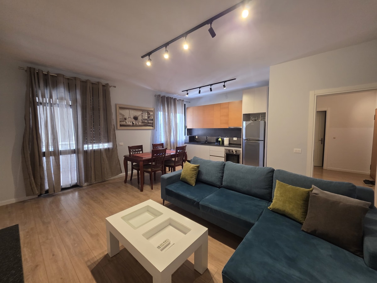 Newly furnished special condo in Central Tirana (5 min walk from Skanderbeg Square). Enjoy comfortably a calm modern relaxing space while visiting Apartment on the 4th floor and there is no elevator so please consider. We can help with bags. Pool, Gym, Sauna extra 2 min walk at Black Diamond hotel The furniture and design aimed for maximum comfort The area is safe and quiet 8 min walking distance to the center and the main public transportation and shuttles to airport or any main location