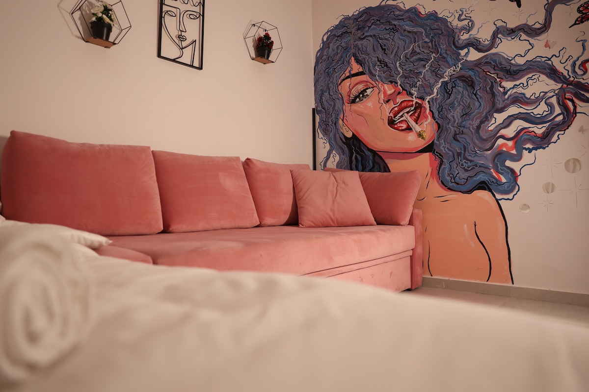 Only 1.6km from the city centre. 2 Strong Air Conditioners (Living Room&Bedroom) Android TV (You Tube & Netflix) 1 Sofa (Living Room, 1 guest) & 1 Big Double Bed (Bedroom, 2 guests) Our place is tucked away in a quiet neighborhood, giving you the peace you crave. Panoramic Skyview: Enjoy stunning views from our panoramic windows. Cozy Fireplace: Nothing beats a night by the fire. Fireplace available after 15th of December! Extra payment to use the fireplace! Let us know before your check-in!