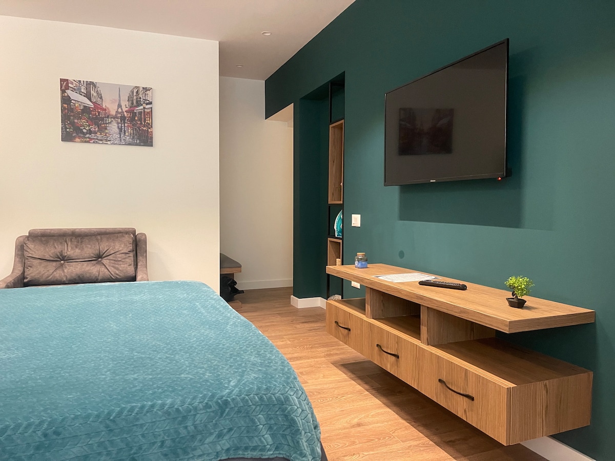 Charming and modern one-bedroom guest house, located in the heart of Tirana. 5 minutes walk to Pazari i Ri. 10 minutes walk to city center and main attractions. You will find a fully equipped kitchen and private outdoor dining area with a BBQ grill.