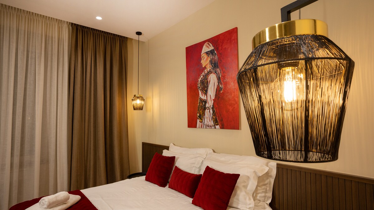 Stay in a chic boutique room in Blloku, Tirana’s vibrant center. Enjoy premium linens for ultimate comfort and complimentary coffee, tea, and bottled water. The room features fast Wi-Fi, a smart TV, and all essentials for a comfortable stay. Self-check-in makes your arrival hassle-free. Surrounded by trendy cafes, restaurants, and nightlife, you’ll experience the best of the city. Whether for business or leisure, this stylish space offers everything you need for a perfect stay.