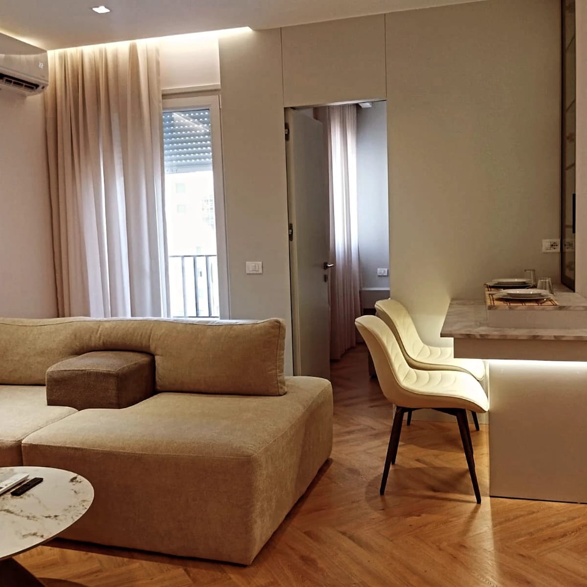Olive Studio Apartments is a newly renovated and elegantly designed studio that offers a cozy and stylish retreat in Tirana. With a bright interior, comfortable sleeping area, functional kitchenette, and modern amenities, it is ideal for both short and long stays. The welcoming atmosphere ensures relaxation and convenience, while its location near the vibrant "Blloku" district keeps you close to the city’s dining, shopping, and cultural highlights.