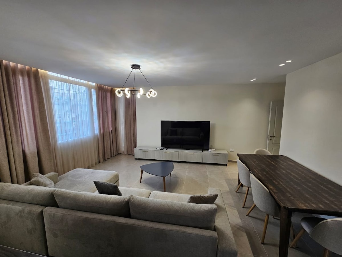 Just 2 minutes walk to the New Bazaar, 6 minutes to the center. Near Toptani shopping centre, government buildings, museums, Opera,medical center. There are various restaurants, cafés, and shops along the whole street. 92 m2 apartment, in 3rd floor with elevator, fully furnished, has 1 bedroom ( 1 double bed which can be separated into 2 single beds ) kitchen, spacious living room, 1 toilet, garage included. TV, air conditioning both rooms,dishwasher, washing machine and iron