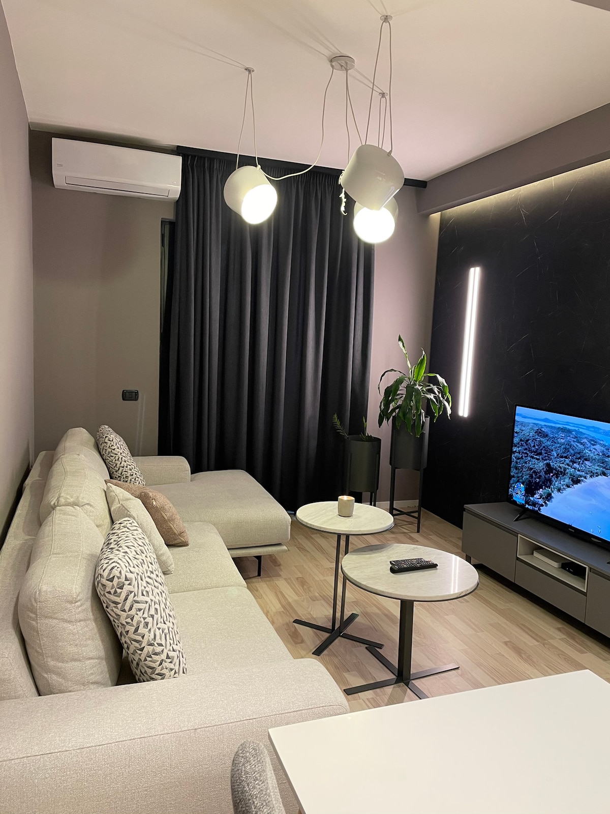 Nestled in a quiet neighborhood in the heart of Tirana, this luxury design apartment is just one minute from downtown—close to everything from historic landmarks to vibrant food spots, bars, clubs, and parks. Recently upgraded with a touch of luxury and carefully chosen design elements, the space offers both comfort and elegance. During golden hour, sunlight pours through the large windows, creating a warm, unforgettable ambiance that adds a special charm to your stay. ☀️☀️☀️☀️