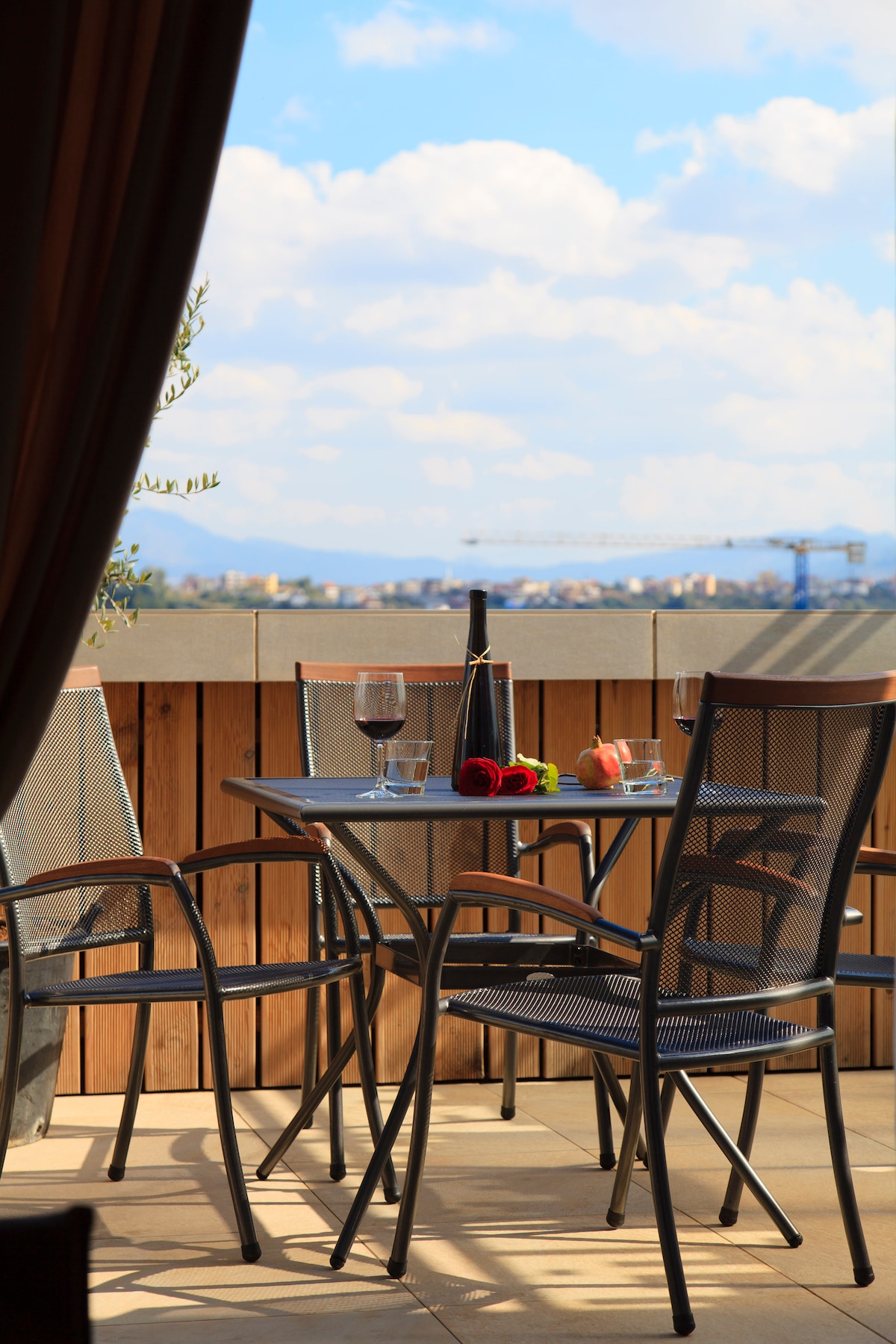 Warm, cozy and bright, the brand-new apartments stand out to offer a unique local experience, with their great location in the middle of it all, breathtaking views from the spacious terrace, and elegant and tasteful interiors. Situated on the top floor of the residence, the penthouse apartments overlook the city with an unobstructed view from the sport field’s complex next to the building, to the Grand Lake Park, and up to the green hills and the iconic Dajti Mountain.