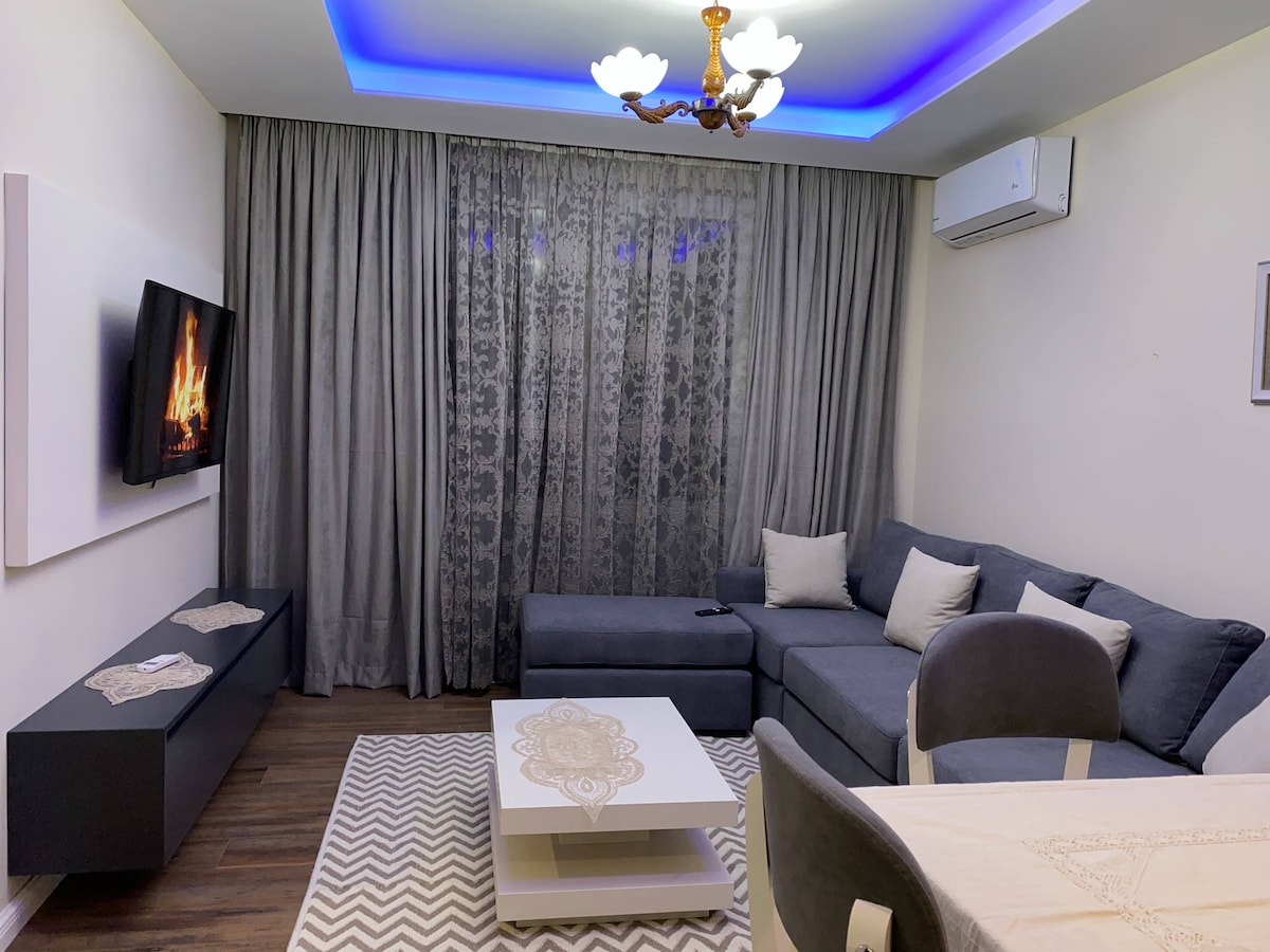 A brand new apartment with a lovely and relaxing design will make you feel you right at home. Right next to the New Bazaar, 6 minutes to the center. Near Toptani shopping centre , government buildings, museums, Opera, medical center. 110 m2 apartment, 3rd Floor with elevator,fully furnished, has 1 bedroom (double bad ) 1 bedroom (2 single beds), kitchen (oven, dishwasher etc) spacious living room, 2 toilets, free parking included. TV, air conditioning in every room,dishwasher, washing machine.