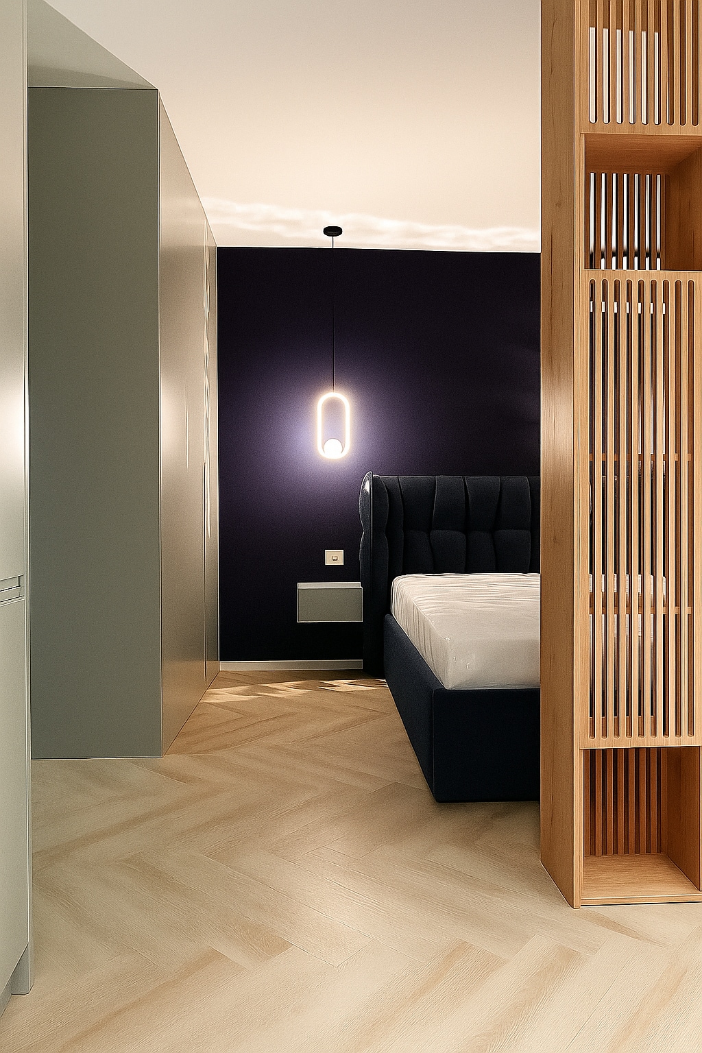 Step into a world of sophistication and artistry, where Parisian style meets contemporary luxury. Adorned with stylish mouldings, elegant furnishings, and natural plants, this apartment is a haven of elegance and charm. Lose yourself in the beauty of forest-themed mural, adding a touch of enchantment to the space. Whether you're curled up with a book in the cozy seating area or indulging in a glass of wine on the balcony, every moment is imbued with an air of refinement and grace.