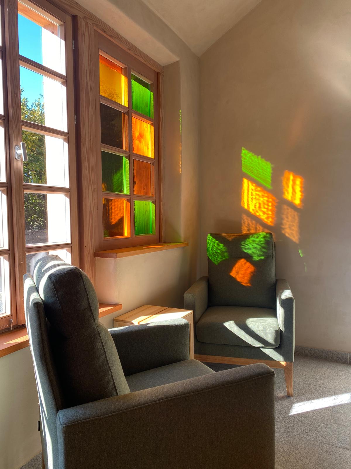 Wenn Sie Angst vor Spinnen haben sollten Sie dieses Häuschen nicht buchen. Wenn Sie gerne im Grünen sitzen oder in der Wiese liegen wollen schon eher. Sie sind umgeben von Bäumen, Büschen, Blumen und Weihern. Die Bundesstraße ist allerdings in Hörweite. Das Häuschen ist ca. 100 Jahre alt und sehr charmant. Nichtsdestotrotz kann man es nicht direkt mit dem Auto anfahren. Die Treppe ins Obergeschoss ist eng und steil. Bad und WC sind im Nebengebäude. Wobei „WC“ Kompostklo bedeutet.
