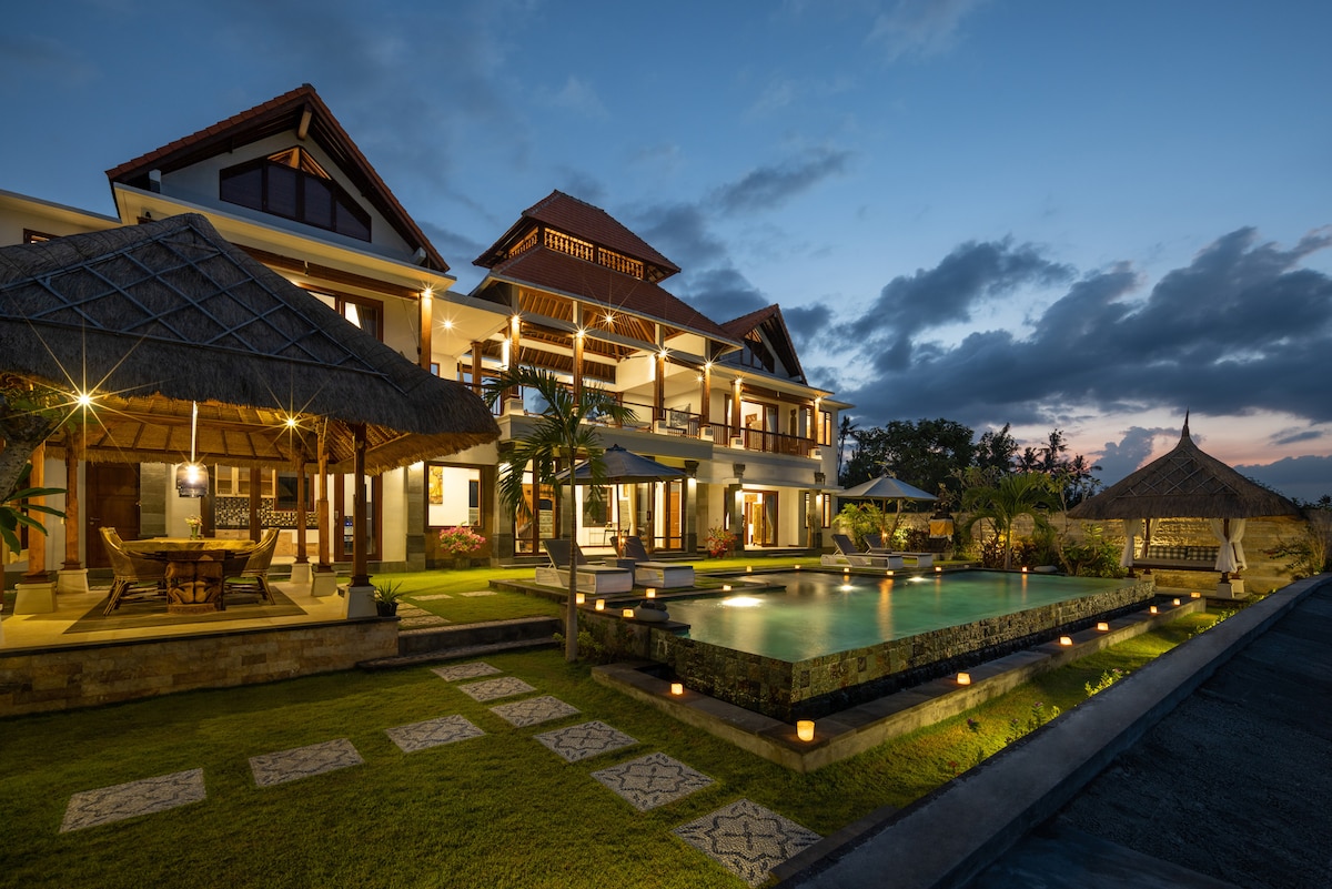Escape to a peaceful luxury villa with stunning views of Mount Agung and surrounding rice fields. Enjoy your private pool, a cozy king bed, and a home theater with Netflix for rainy days. Nestled in a quiet Balinese village, it’s perfect for couples seeking nature, comfort, and local culture. Wake up to birdsong, unwind in the pool, and discover the real Bali, authentic, serene, unforgettable.