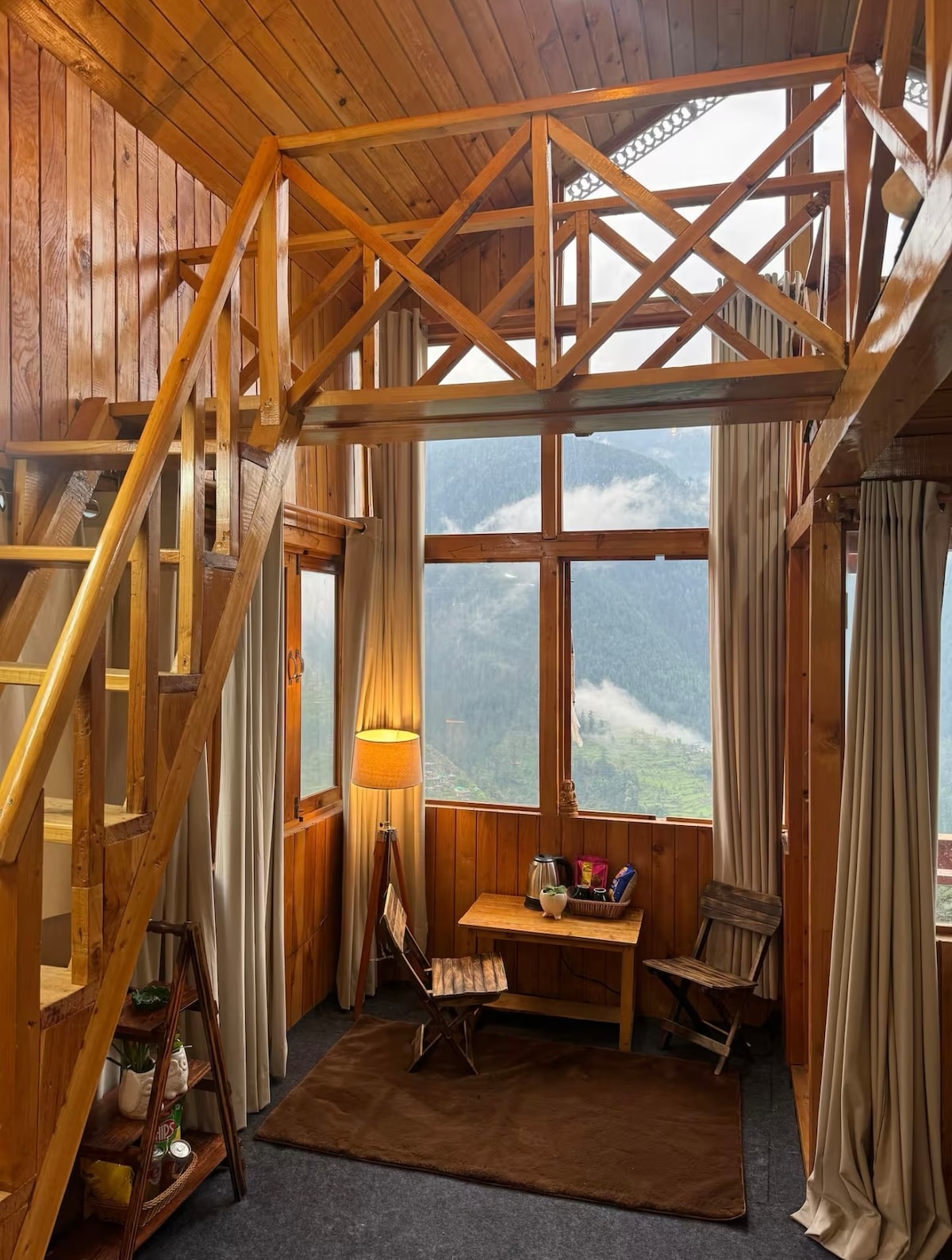 You'll love this unique and romantic escape. This cozy Treehouse in Tandi: Above the Clouds, wrapped in Mist. This is a place for dreamers. A sanctuary. A space where the wind tells old stories and the quiet feels like an embrace. Whether you’re curled up in bed or soaking in the jacuzzi, you’ll feel the magic of the Himalayas surround you. It is a 280-300sqft treehouse.