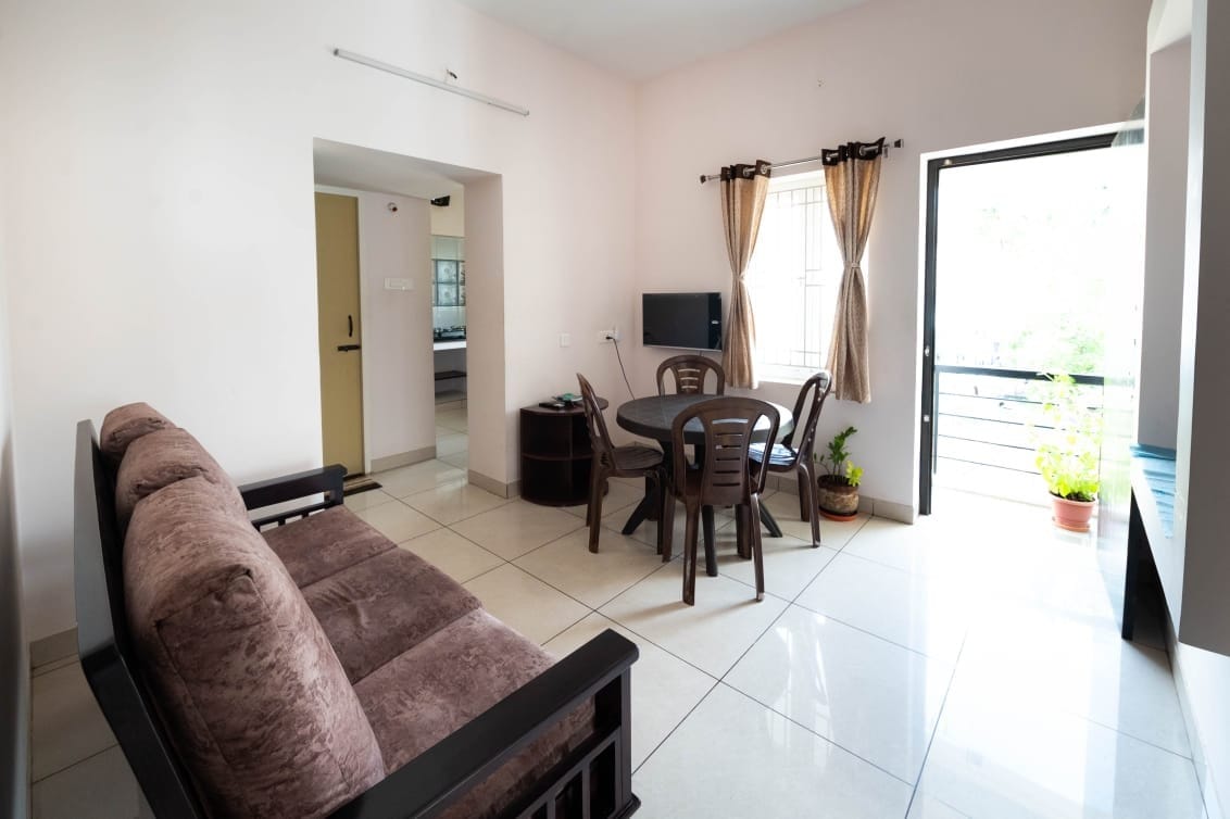 Welcome to our peaceful 1 BHK — a quiet, comfortable space designed for relaxation. Perfect for couples, families, solo travelers, and business guests looking for a calm place to unwind after a busy day. The home is clean, airy, and well-maintained, with a cozy bedroom, spacious living area, attached bathroom, and a simple kitchen setup for light cooking. You’ll enjoy privacy, natural light, and a soothing environment throughout your stay.