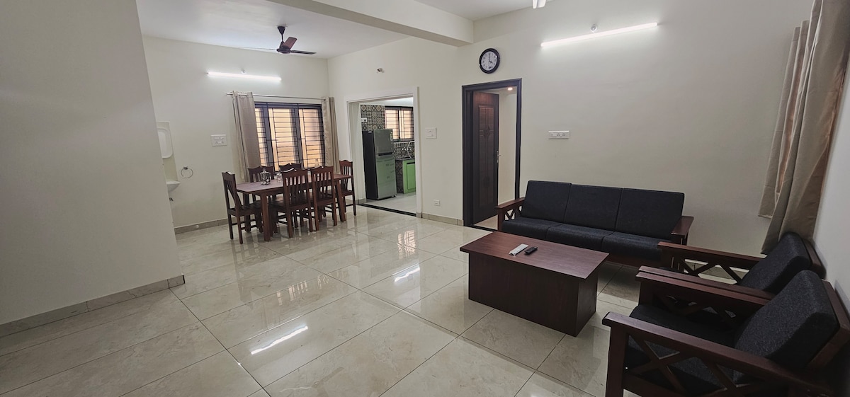 Enjoy a comfortable and convenient stay at our 2-bedroom home which is perfect for families. 🏠 Property Highlights: 2 well-furnished bedrooms with comfortable beds and wardrobes Fully equipped kitchen for home-style cooking Clean, modern bathrooms with hot water Free Wi-Fi and parking available 💫 Whether you’re visiting Trichy for a family function, temple tour, or just a peaceful getaway - our 2-bedroom home offers the right mix of comfort, convenience, and warmth.