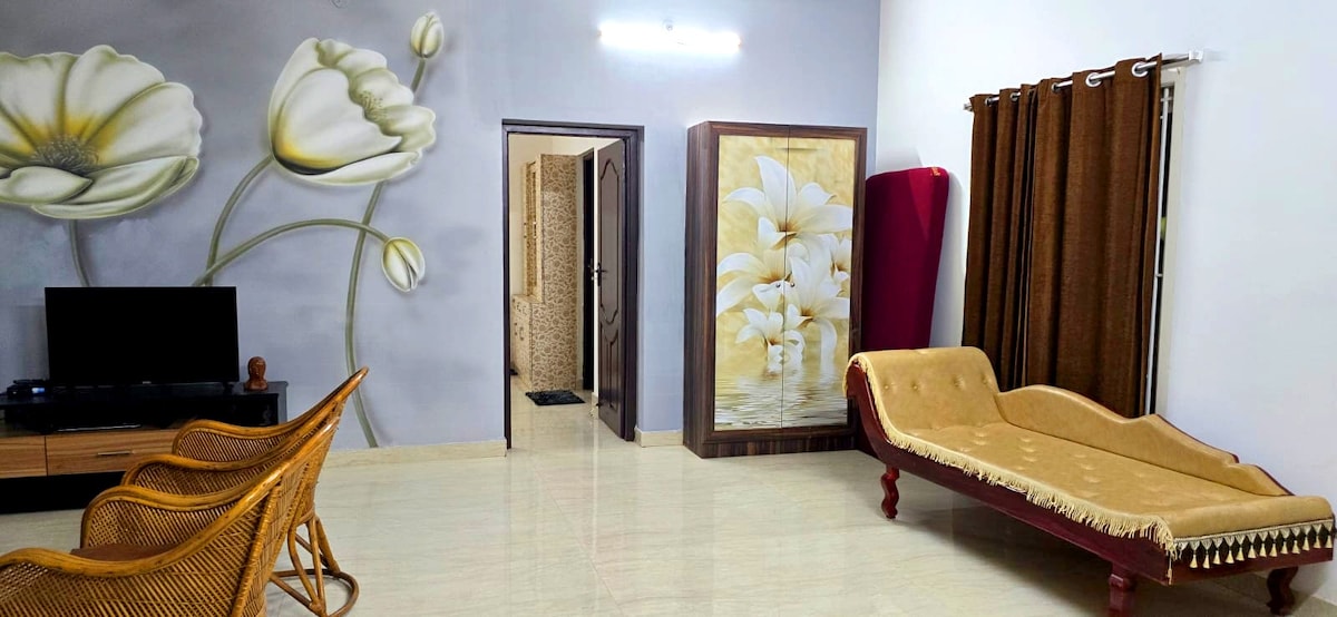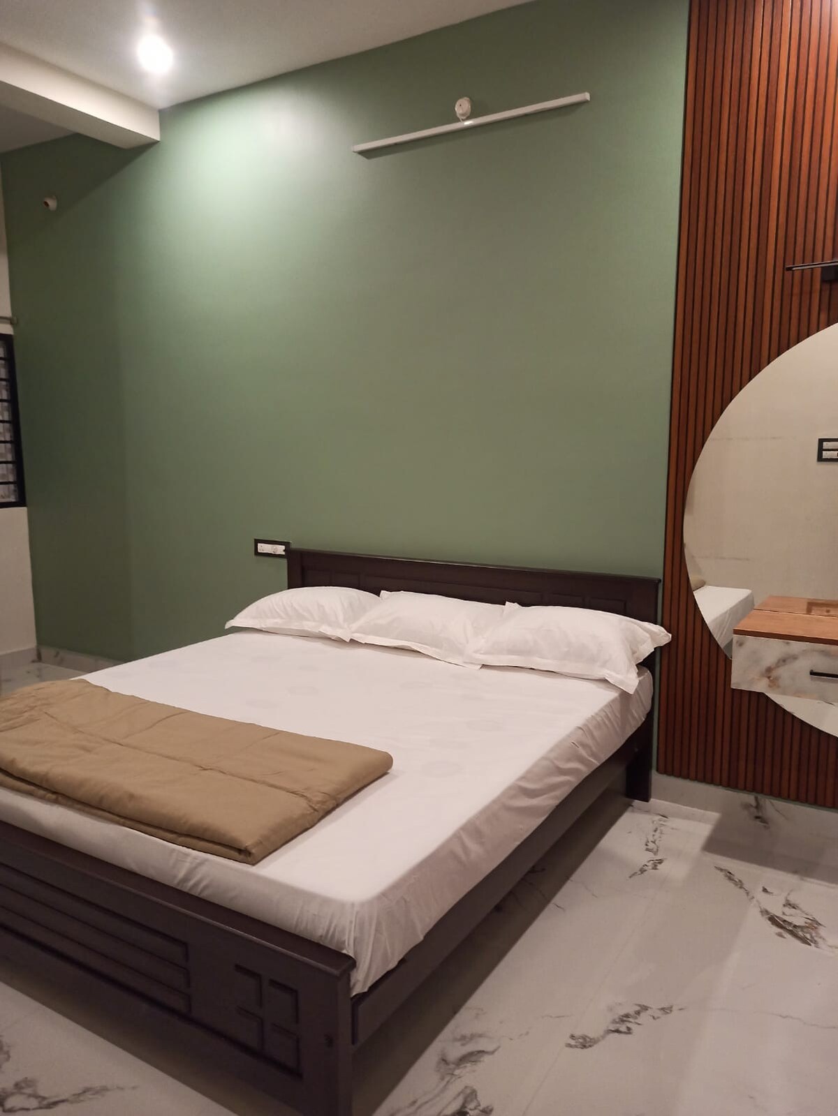 Ideal for family stay and business visits Easy access to transport and city location Peaceful environment with essential amenities This simple, clean, and comfortable 2-bedroom service apartment is located very close to the New Bus Stand The apartment can comfortably accommodate up to 4 guests and is thoughtfully designed for a peaceful stay It features a work table, Wi-Fi & dining table, making it suitable for both work and relaxation A simple kitchen is available for light cooking