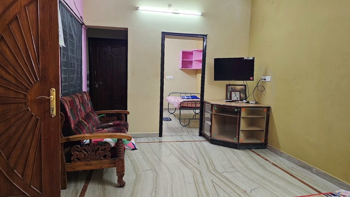 ✔ 2 Comfortable Bedrooms ✔ Spacious Hall for relaxation ✔ 1 Clean attached Bathroom and 1 unattached bathroom ✔ Accommodates up to 5 Guests ✔ 24/7 Water & Electricity ✔ High-Speed WiFi ✔ Kitchen Access (on request) ✔ Free Parking ✔ Smart TV / Netflix ✔ Drinking water can ✔ AC in both bedroom ✔ Extra blankets ✔ Hot water ✔ Temple guide map ✔ Self check-in