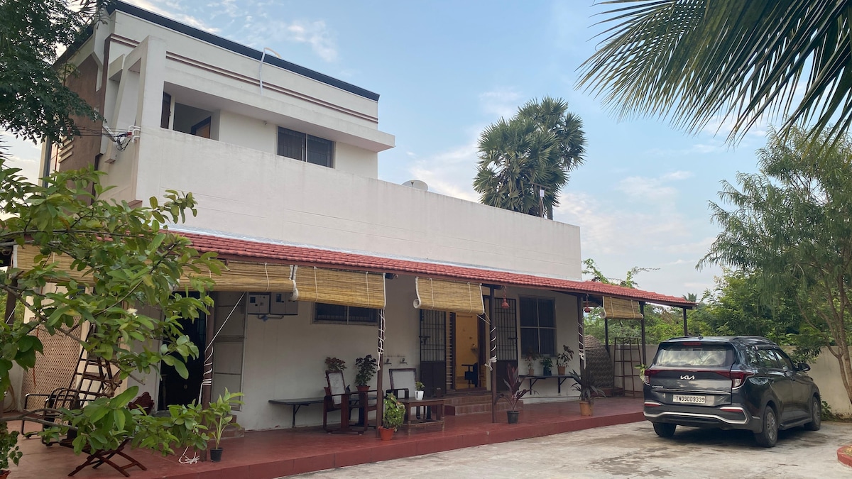 A serene, scenic Bungalow with 3 AC bed rooms, two big halls, kitchen, one office room, all facilities for a cozy stay. 1km from Ramana ashram, 10 mins to the famous Lord Shiva Temple, Tiruvannamalai temple. Best suited for meditation, healing and spiritual visits. Best family place as well.