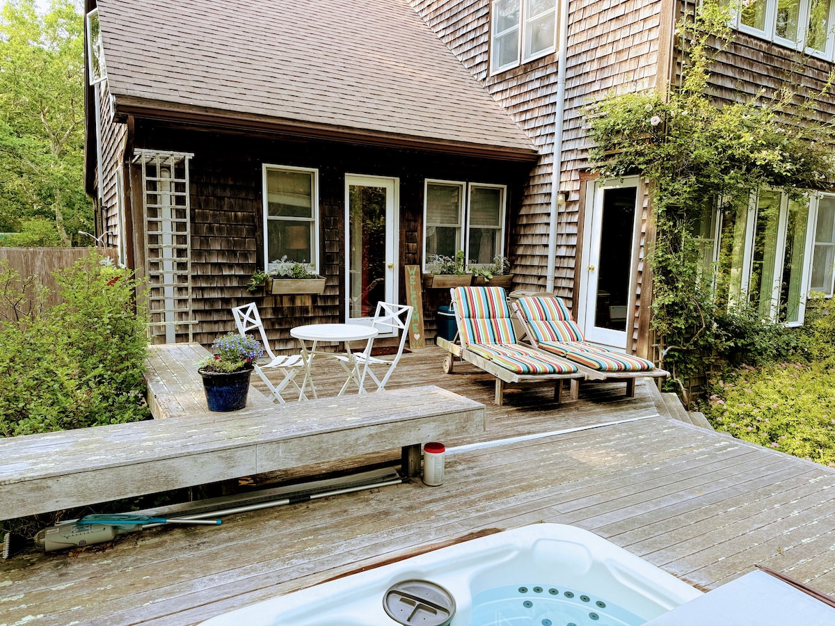 Welcome to our charming 2-bedroom private guest house, nestled in a peaceful Chilmark neighborhood. Enjoy the spacious outdoor area, perfect for gatherings, featuring an 8-person dining set, a wood-burning fire pit, a BBQ grill, a 6-person hot tub, and a seasonal outdoor shower. Our location offers easy access to local attractions: just a 4-minute drive to Alleys General Store, West Tisbury Center, and the library, and only 5 minutes to the stunning Lucy Vincent Beach and Chilmark town center.