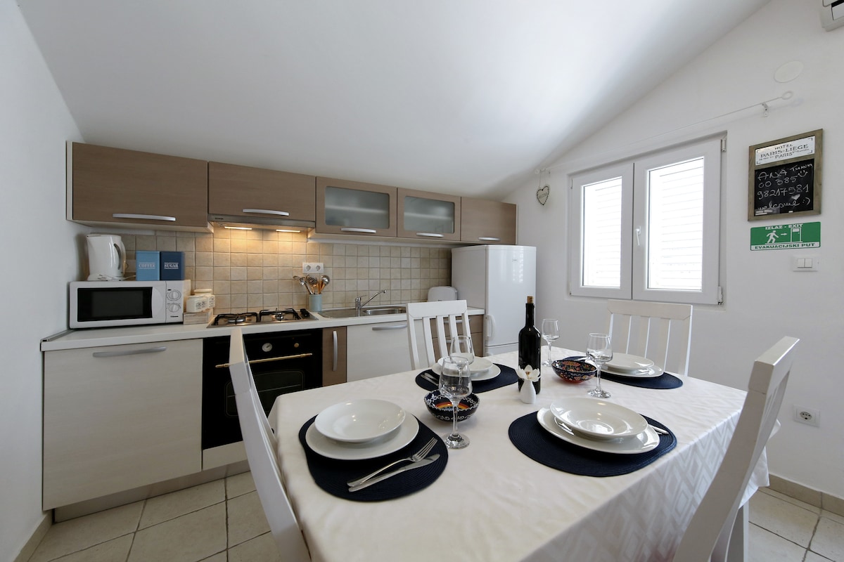 Our beautifully furnished apartments/studios are located in the popular tourist town of Tisno, on the coast of Dalmatia, Croatia. The apartment can accommodate up to max. 3 persons, during which everyone has their comfort. Nearby, approx. 2-3 minutes walk away, there are popular music festivals, because of which we fill up our accommodation every year. We look forward to every guest. Kind regards, Anton!