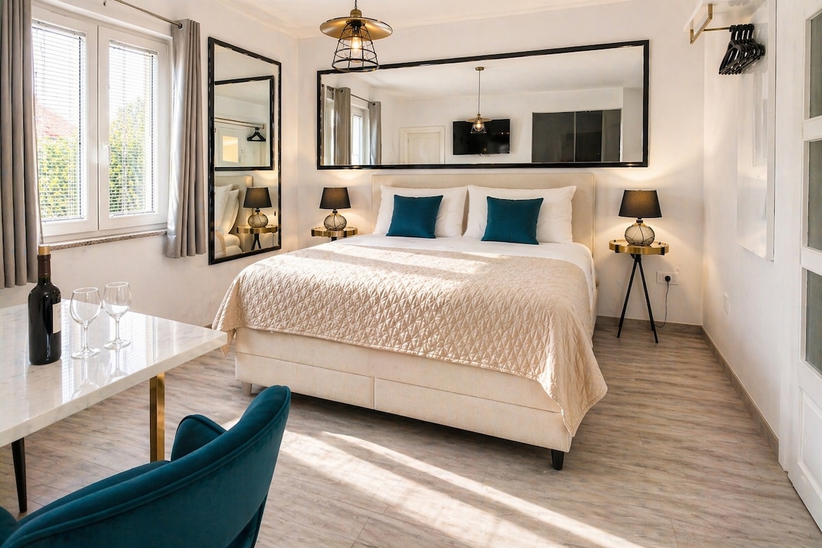 ✦ Free breakfast buffet included daily ✦ Heated outdoor pool + BBQ + garden ✦ No 7-night minimum – flexible stays welcome ✦ Free parking & fast Wi-Fi in every unit ✦ Villa-level luxury finishes — at apartment-level pricing