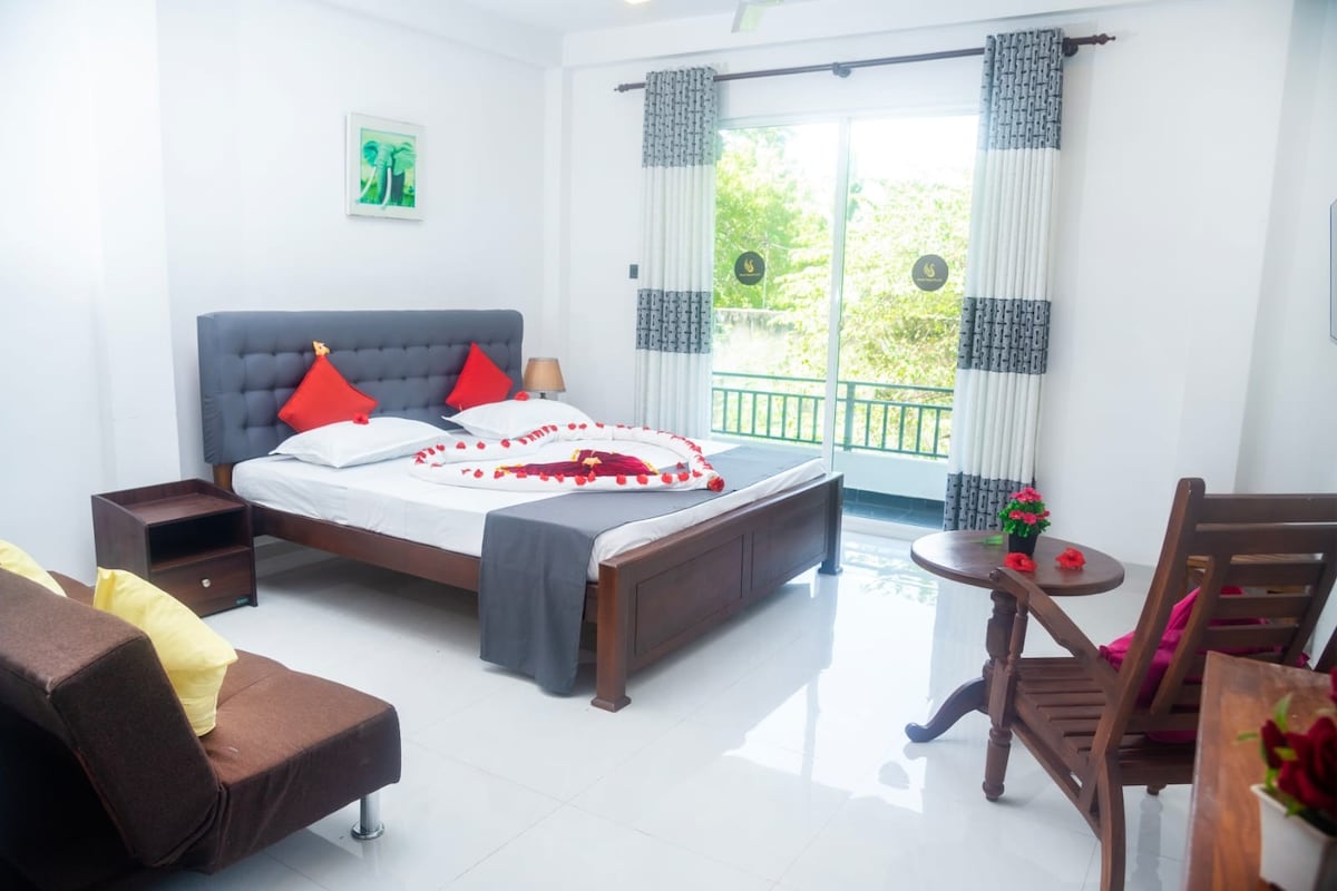 Escape to tranquility at MG Resort - Yala, nestled in a serene oasis. Our intimate resort offers 3 air-conditioned rooms with attached bathrooms, each accommodating up to 4 guests. Immerse yourself in comfort while being just moments away from renowned destinations. Explore the nearby wonders: 3km to Katharagama town, 3km to Kiriwehera temple, 7km to Yala entrance, and 10km to Sithulpawwa temple. Let our exceptional guest service elevate your holiday experience. Welcome to your ultimate retreat.