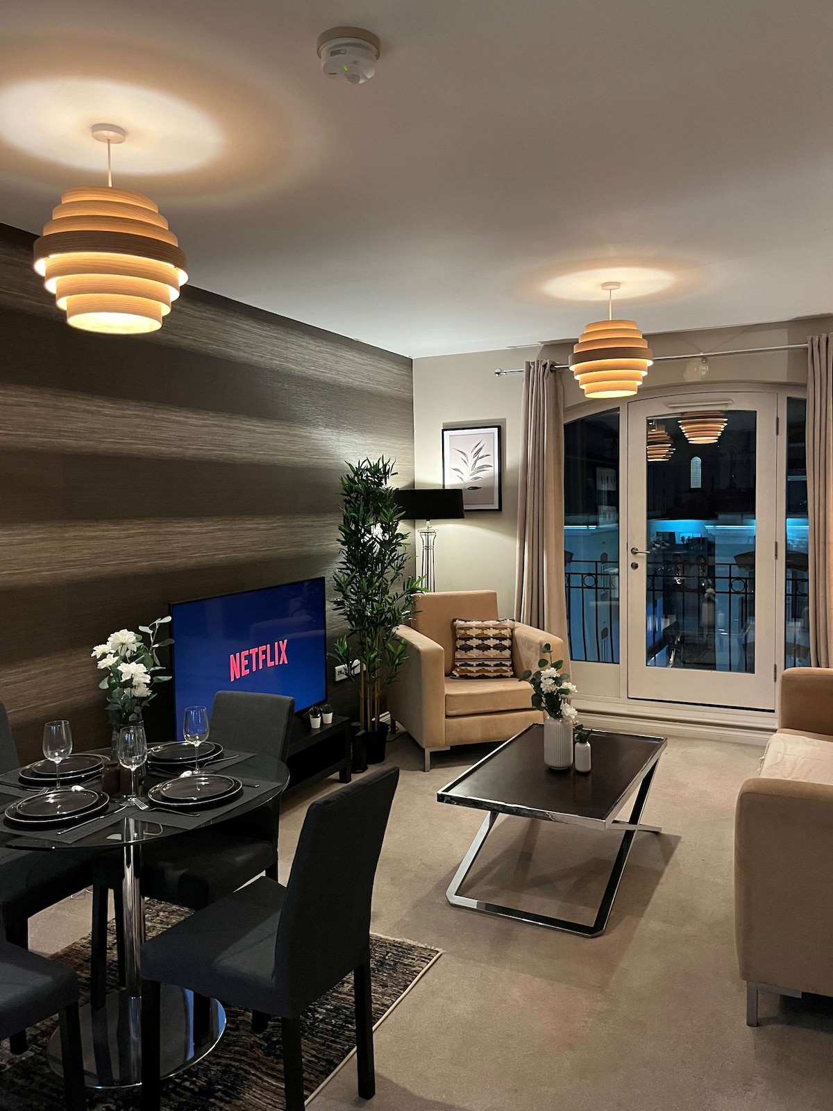 Our luxury 5* one bed fully equipped apartment awaits. Beautifully furnished featuring artwork from Northern Irish artists this New York style space is in an ideal location for the short and longer term visitor alike. Floor to ceiling picture windows give the discerning traveller spectacular vistas over the City to the hills of Belfast. Located in the artisan Dublin Road Quarter close to City Hall you get unrivalled access to all this exceptional destination has to offer. An ideal WFH space too!
