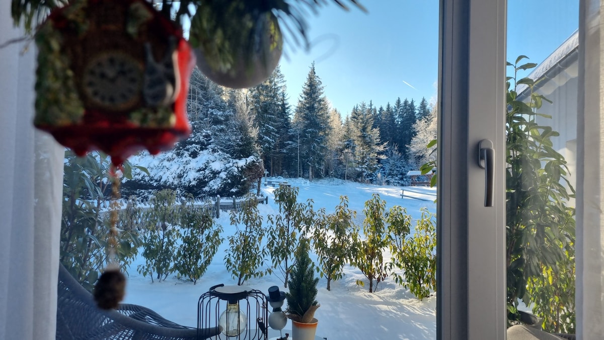 Mit viel Leidenschaft & Liebe zum Detail eingerichtete Ferienwohnung. Der ideale Ort um bei knisternder Gemütlichkeit die Seele baumeln zu lassen. Großzügig geschnittene Räume, für viel Ruhe und Privatsphäre. Das Besondere Highlight: Das Wohnzimmer verfügt über einen eigenen Kamin und vielen Büchern zum schmökern. Jeder Raum ist gefüllt mit Licht, Luft & Leichtigkeit. Von jedem Zimmer aus gelangt man direkt auf einen Balkon mit Blick in die traumhafte Natur. Wanderwege beginnen direkt am Haus.